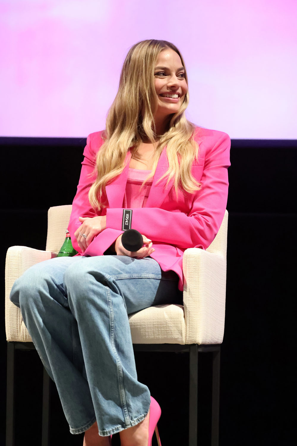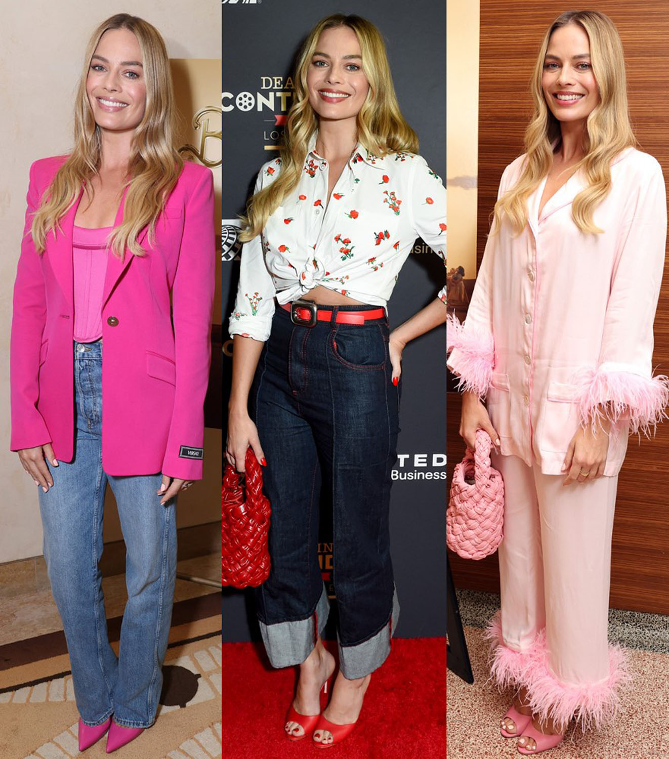 Which means that Margot Robbie is back in Barbie mode and Barbie clothes. I’m a few days late on these outfits but at least I get to show you a whole series that takes us right back to those wonderful few weeks of fashion in June and July when she and Andrew put together that run of killer Barbie pieces.
