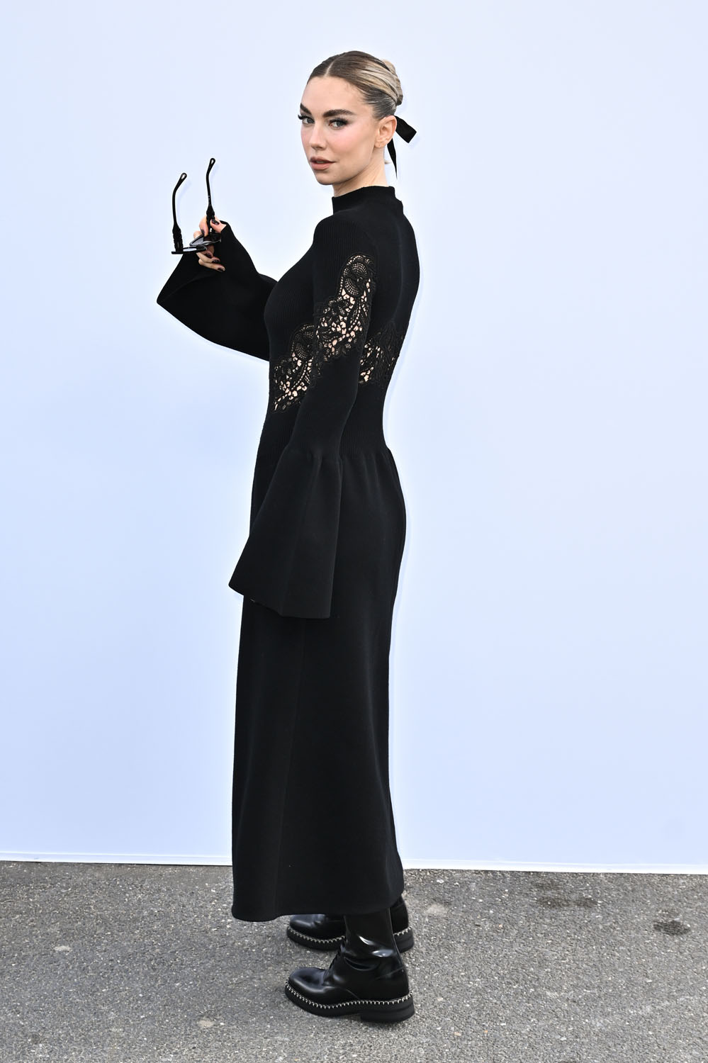 Now to Vanessa Kirby at Chloé. This is just a great black dress, period. But it’s the flat boots that make the difference. The dress, with the lace, and the bell sleeves, nine out of ten would go with a heel. The fact that Vanessa chose a boot gives it a fresh edge, an attitude. And she is serving with the poses, with her expression. The category is assassin, put her in a John Wick movie right now! This bitch will cut your throat and go shoe shopping immediately after.