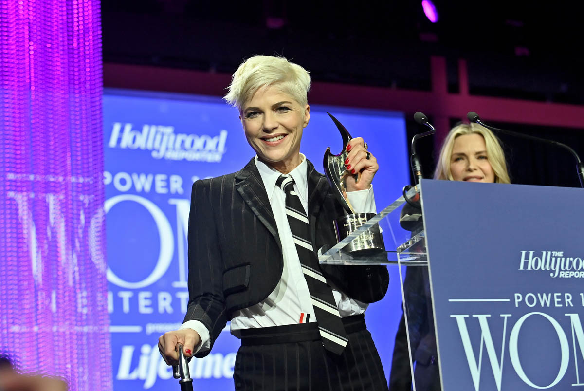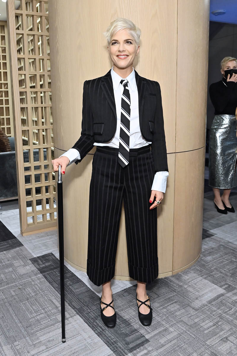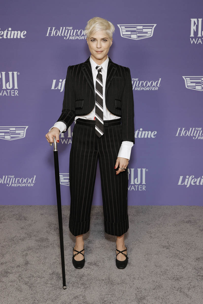 Both outfits of this week happened at The Hollywood Reporter’s Women in Entertainment event on Wednesday. Let’s start with Selma Blair who received the Equity in Entertainment award, presented to her by Michelle Pfeiffer. Have you seen Introducing, Selma Blair? You can stream it on discovery+ via Amazon and it’s well worth your time. It was filmed during her stem cell transplant to treat MS and it’s at once heartbreaking and frustrating but also funny and charming – because Selma is so raw and vulnerable but also tough and irreverent. Just like she was during her speech the other night, when she was honoured for representing through her story the story of others with disabilities who are not given space in the industry:
