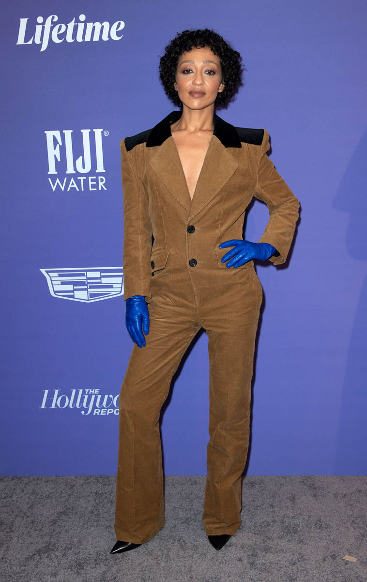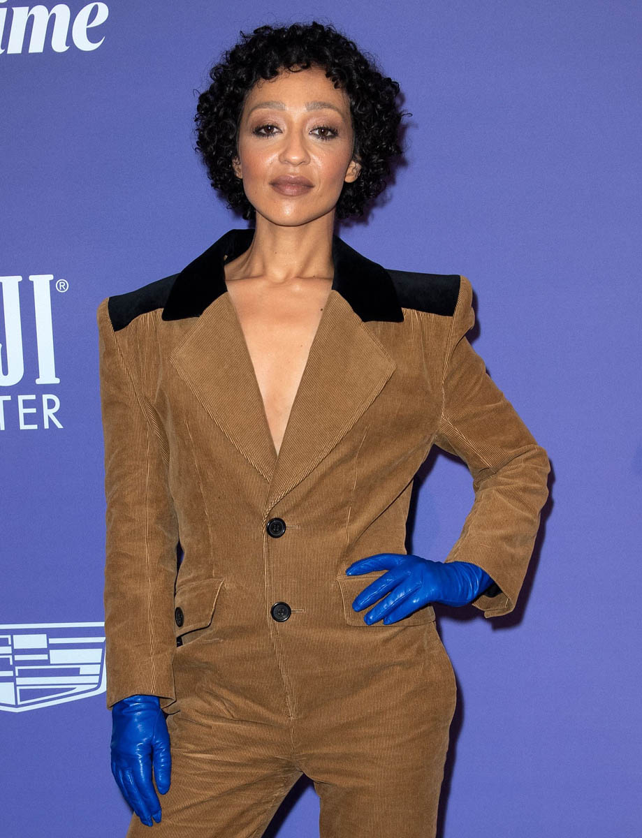 As for the other outfit of the week, on Ruth Negga…this corduroy jumpsuit, OMG. It’s so good. It’s so f-cking good. The colour is perfect, because if you’re going to create a style moment out of corduroy, it might as well be brown. Those black patches on the shoulders are an excellent detail. And the decision to pair it all with blue leather gloves? Chef’s kiss.