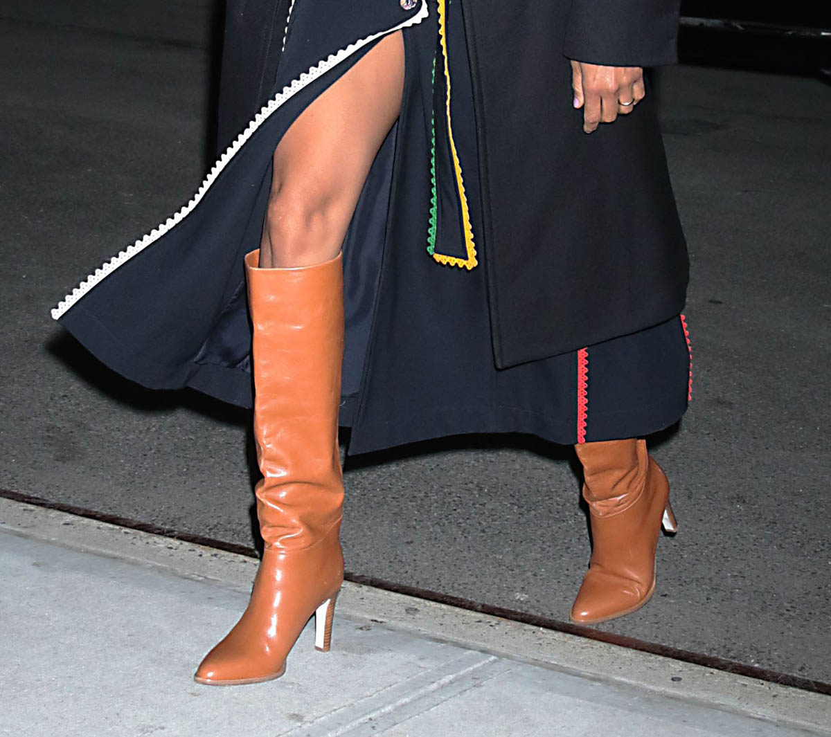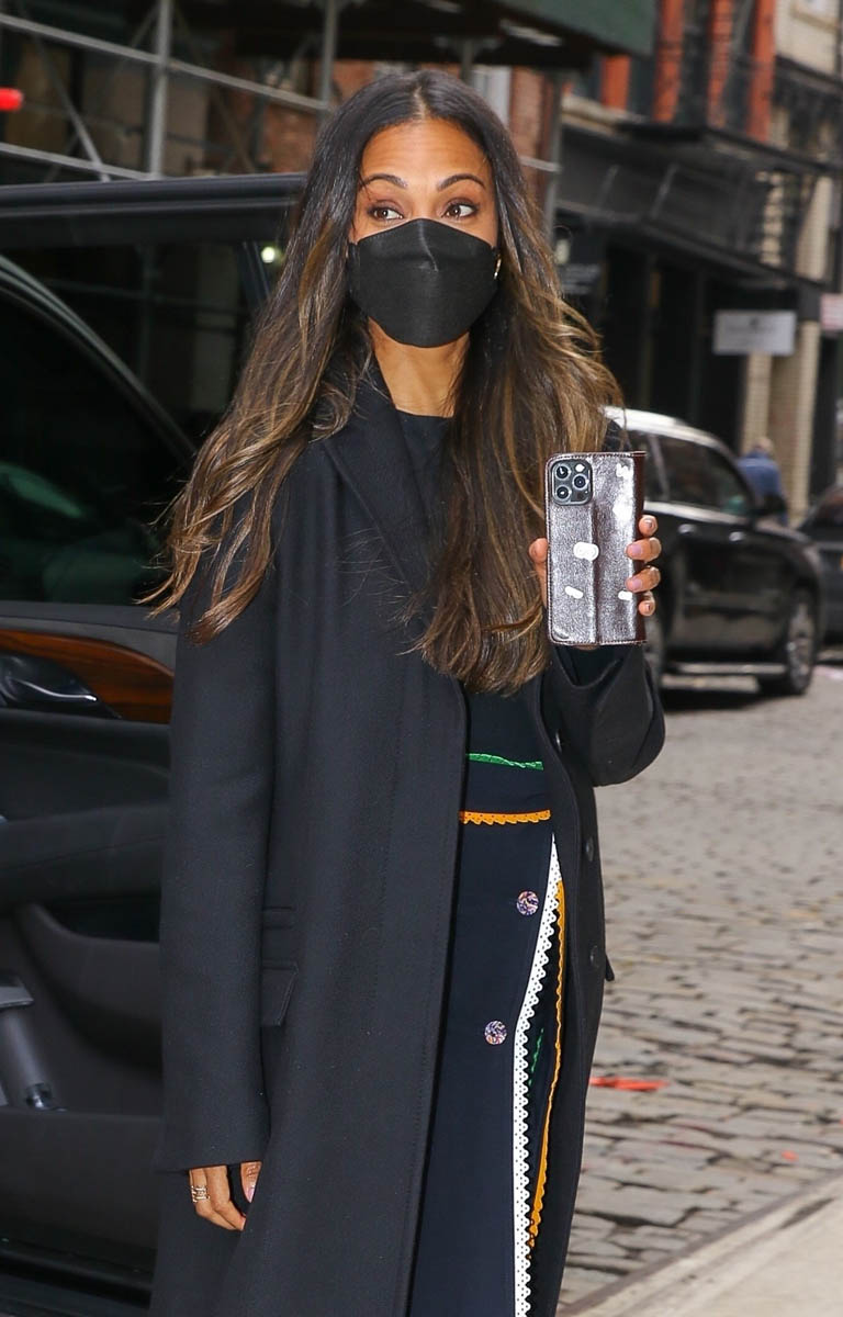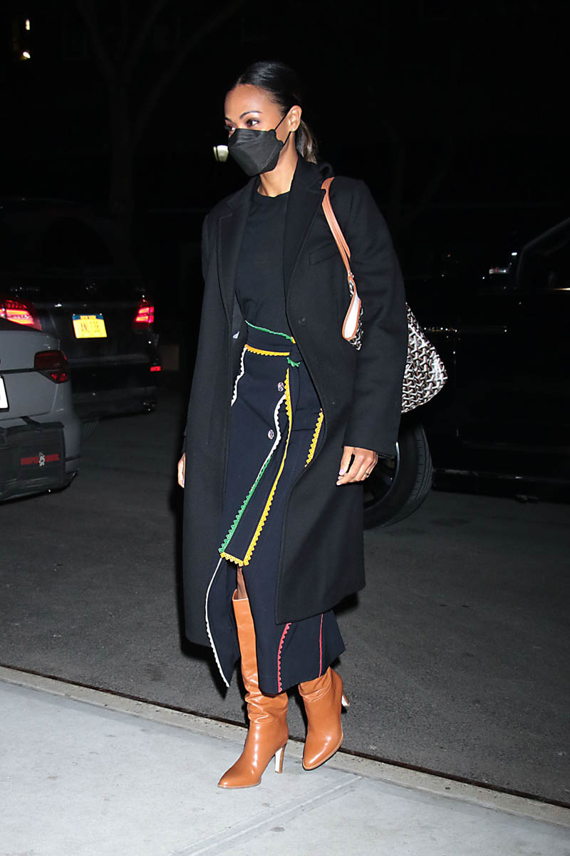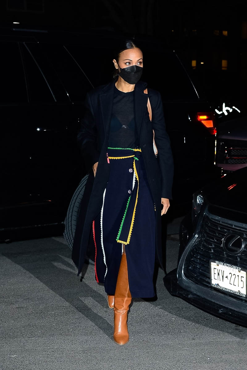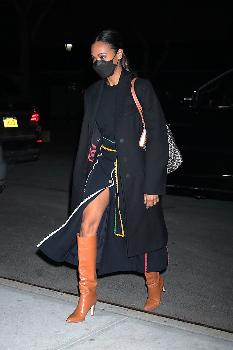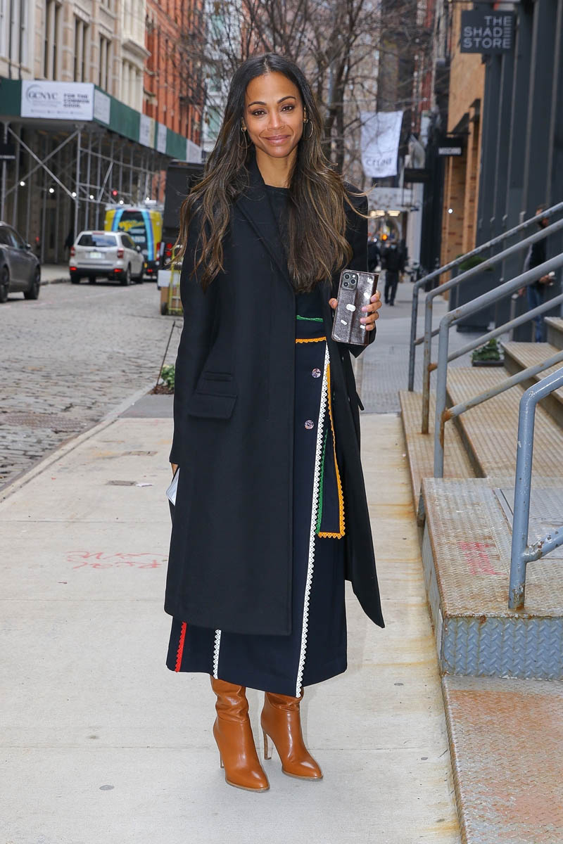 It was actually supposed to be just one. Earlier in the week, while in New York promoting The Adam Project, Zoe Saldana stepped out in a great black wrap dress with multi-colour trim and an excellent pair of boots. For me it’s the boots. I love the colour. I love the slight slouch. They’re SO good.
