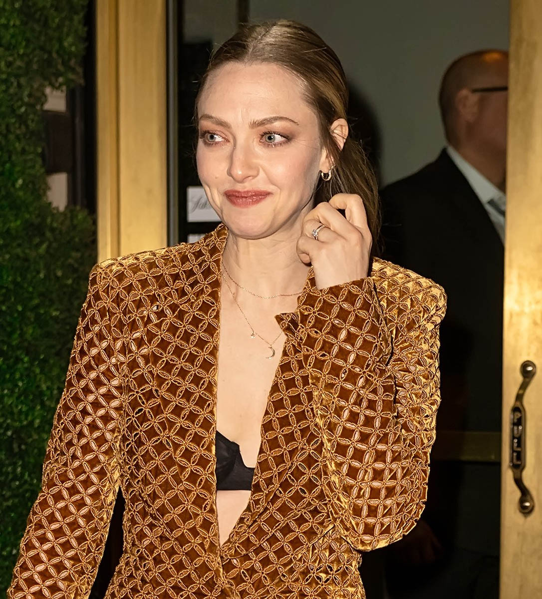 To go back to Zoe’s outfit though, like I said, she was the standalone OOTW until last night, when Amanda Seyfried stepped out, also in New York, likely promoting The Dropout. This velvet suit though. Right?
