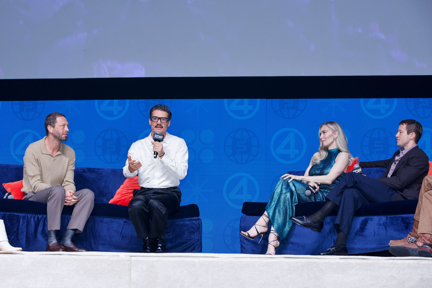 Vanessa Kirby, Ebon Moss-Bachrach, Pedro Pascal, and Joseph Quinn, aka the cast of The Fantastic Four, were at CCXP Mexico this past weekend to promote the movie which comes out on July 25. But that’s not Pedro’s next movie. His next movie is Materialists, opening soon, on June 13, just ten days away, so he’ll be in New York soon to join director Celine Song and co-stars Dakota Johnson and Chris Evans for the premiere. If you’ve been visiting this site over the last few months, you know this is my most anticipated movie of the summer – a proper rom-com with three big stars, gimme!
