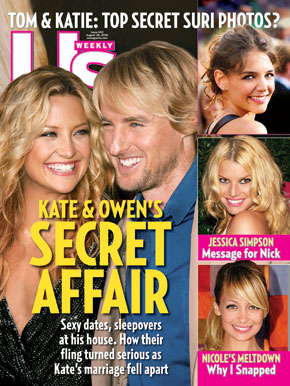 Janice Min. I love her. Us Weekly"s new cover…I"m assuming you"ve seen it? Is Kate Hudson with Owen Wilson? F&ck, I hope so. After all, they don"t call him the Butterscotch Stallion for nothing and even though he might not be her aesthetic equal, he"s undeniably much more appealing than that Crow, don"t you think? Especially a Crow who would creep on a doll? I"d say a little bit of Owen is exactly what she needs. I have no further details to offer beyond what"s in the magazine except to say that according to sources I"ve spoken with backstage at the MTV Movie Awards in June, when Kate and Owen and Matt Dillon were there together to present, there was nothing suspicious going on. They were not terribly tight, there was no awkward chemistry, nothing beyond friendship and camaraderie…and the sweet smell of something weedy. But that"s neither here nor there. The bottom line is that Kate is in the news. She"s single, she"s gorgeous, she glows, she has working eggs and a working womb, and she is a much more worthy candidate for the title. Kate Hudson - America"s New Sweetheart? Please Goddess, make it so. Anything to end the interminable reign of the industry"s most obsequious fraud, the most successfully sold, packaged, and repurposed celebrity in recent memory. So yes, I throw my vote in for Kate Hudson. Because on pedigree, on personality, on perkiness, and above all on pity-free (so far), she handily trounces the current. And…as if reading our minds…take a look at these photos from LAX - an inpromptu transfer of power perhaps? Something about Jen"s wistful expression at the very end, the last photo here, actually moved my heart a little, like the look that crosses the face of Miss Universe, after her final lap around the stage, no more cupped hand waves, no more fluttering lashes, Just Jen, no crown. You really think she won"t claw through every grain of sand in Malibu to get her PityBack? Please. This bitch is fighting for her life, y"all. She is threatened by a formidable opponent. Which means we are NOT going to hear the end of it for weeks. People today, Oprah tomorrow. Let"s hope Kate Hudson is up for the challenge.
