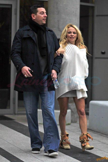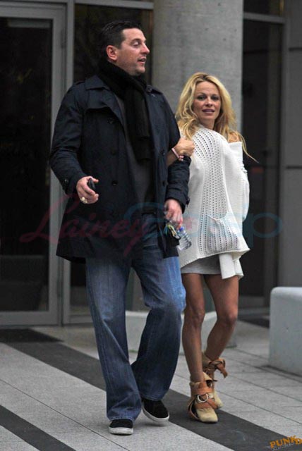 Here she is with former football player Mitch Berger and his big ass Super Bowl ring. They spent most of the day at his apartment yesterday. At around 11am, he picked up a few bottles of wine and some strawberries. Both were well lubricated by the time they emerged well after 4pm when he drove her back to her hotel. She went upstairs, presumably to change or whatever while he waited for her downstairs. After half an hour, and still no Pam, Berger hit up a convenience store across the street for some breath mints. Two sources who saw him inside the store say it sounded like he was pretty hammered. He then went back into the lobby of the hotel to see if Pam was ready. Apparently there was no answer when he tried calling her. So he pleaded with hotel staff to contact her, claiming that she had promised him she’d come back downstairs to continue hanging out. Finally, after telling them that he was worried about her, they went up to check on her, eventually coming back down with the news that she’d passed out. A disappointed Berger left alone.