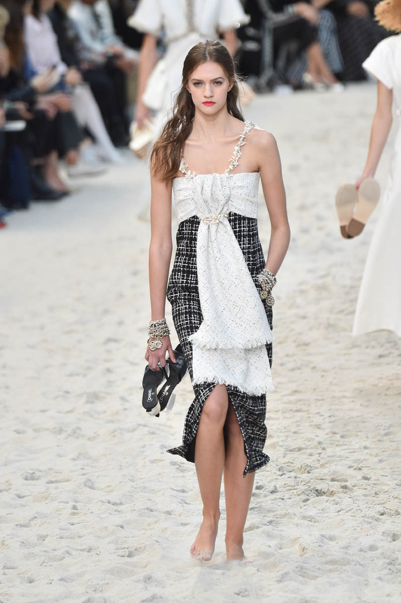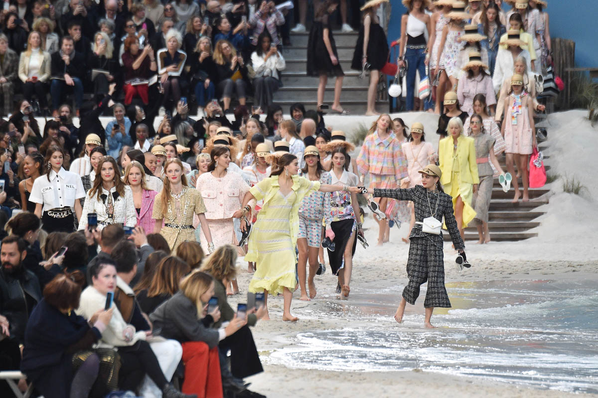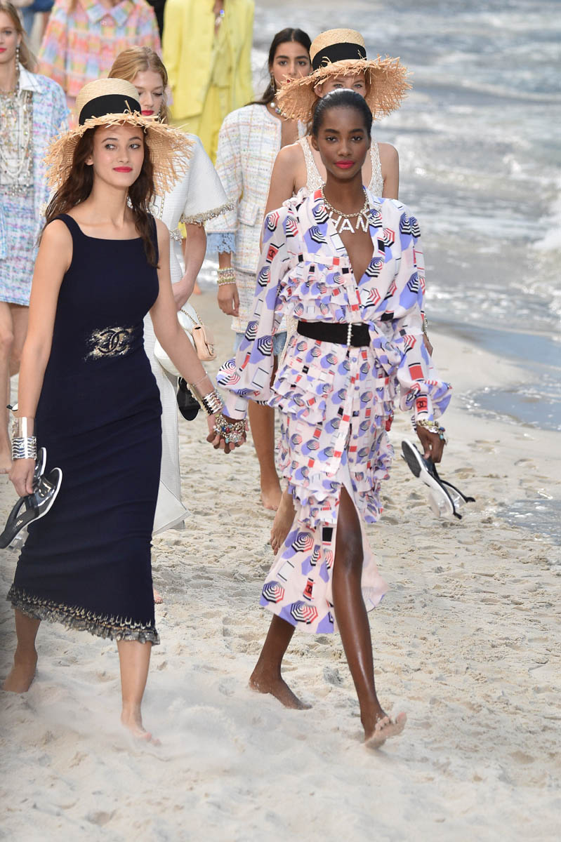 Many of the models took off their shoes and walked barefoot in the sand. They wore leggings. They wore slides. They even wore bike shorts. Chanel bike shorts? How much are these bike shorts? Would you crotch-sweat through a pair of $800 bike shorts? That said, as many have pointed out, if there’s anyone who knows about a beach walk, or a beach run, in spandex, it would be Pam.