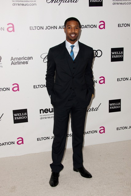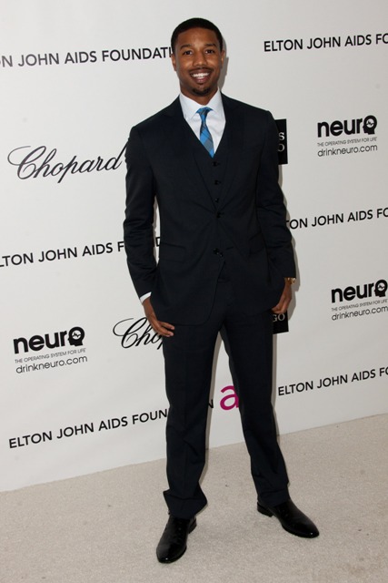 Attached - Michael B Jordan at the Elton John Oscar party on Sunday