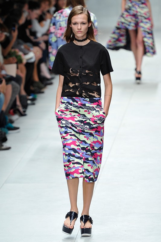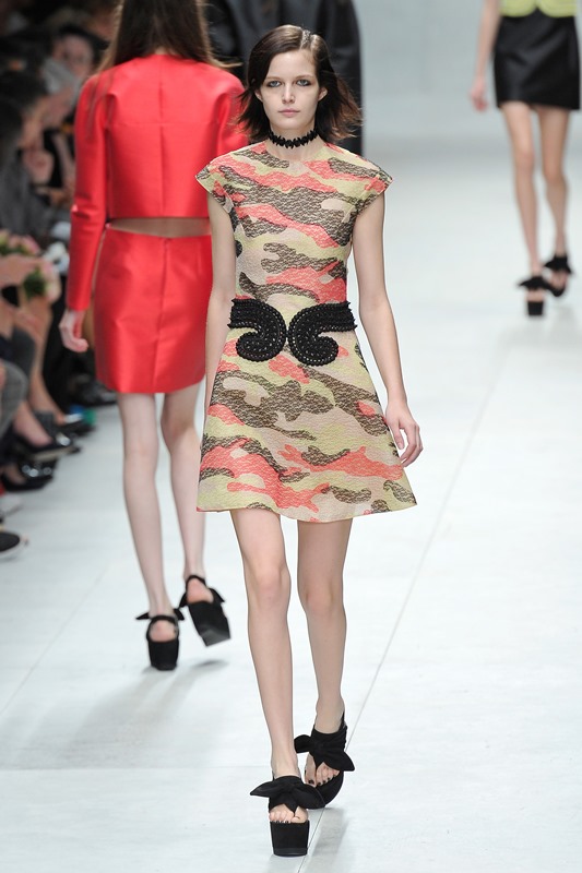 I LOVE the camo print colours happening here. LOVE IT SO MUCH. Phillip Lim did it for fall this season. I have a pair of dark blue and grey camo print pants that are my current favourites. This is for spring though…for sure. If only Carven was cut to fit me better. It never goes well around my hips. Really good collection overall though. The pink gingham is awesome too.