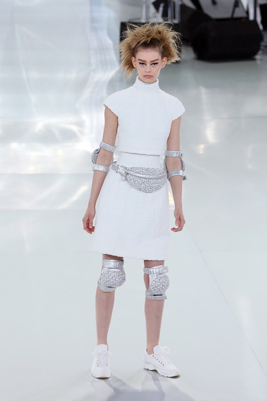 Kneepads? Kneepads are Haute Couture now. And trainers! Karl sent very few heels down the runway. This makes me happy even though, obviously, by the time it gets on to the street, the buyers would never wear the dresses with flats.