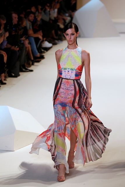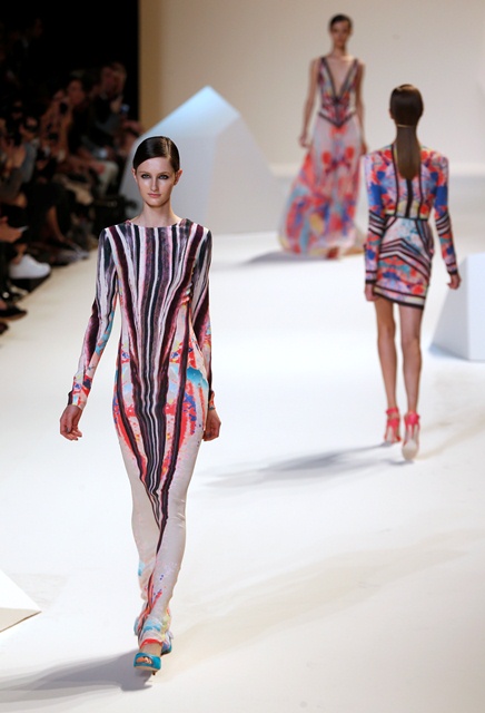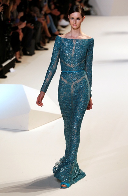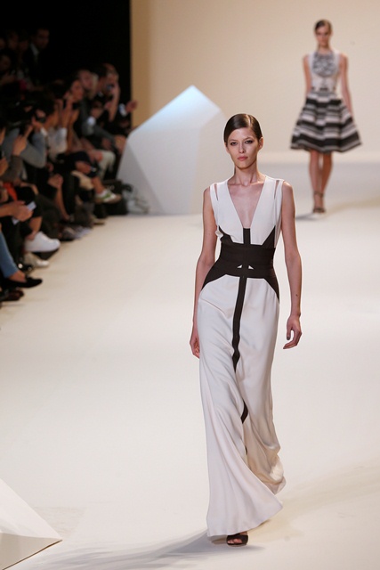The most Hollywood collection that we’ve seen in Paris. That gauzy flowery dress with the black bands all over the bodice will show up somewhere soon, for sure. Sasha thinks I’m crazy for not being as into Elie Saab as everyone else. It’s not that I don’t think the clothes are beautifully constructed, it’s just... sometimes straight pretty is just pretty boring.