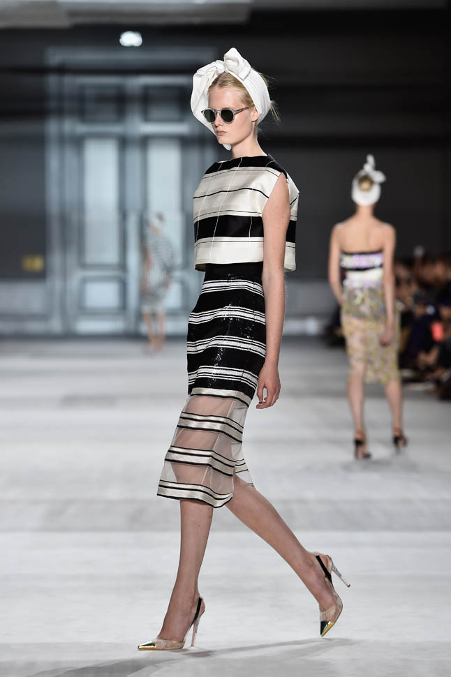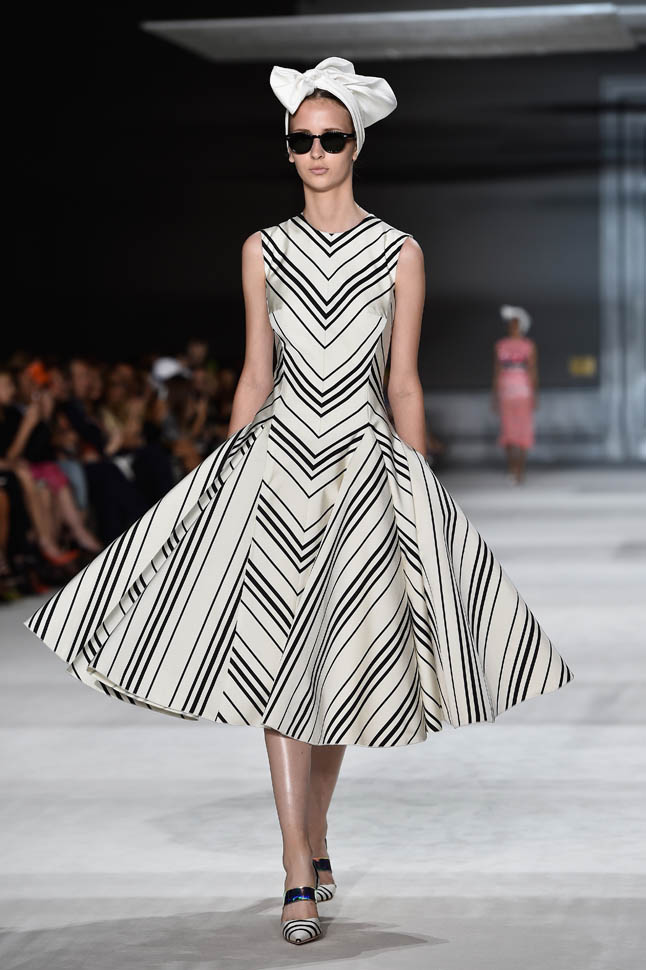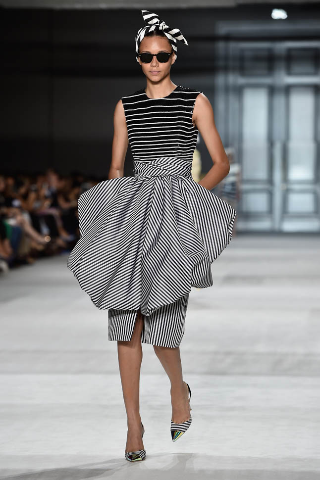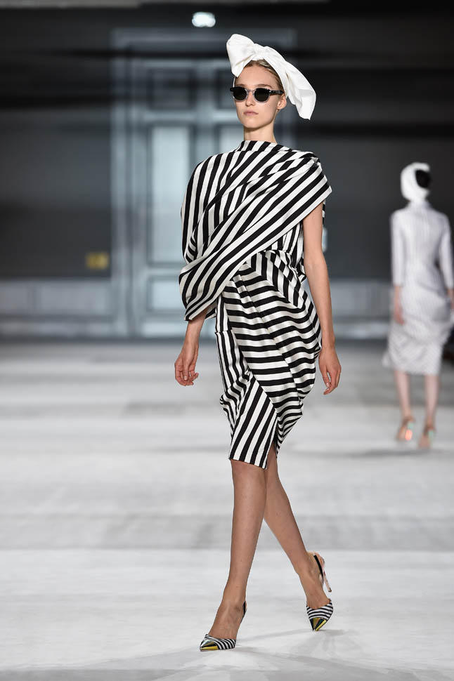 The shoes in this collection are the standout for me. Otherwise, some of it doesn’t make sense. I loathe those fluffy gowns. I love the sleek striped draping. How is it the same runway?
