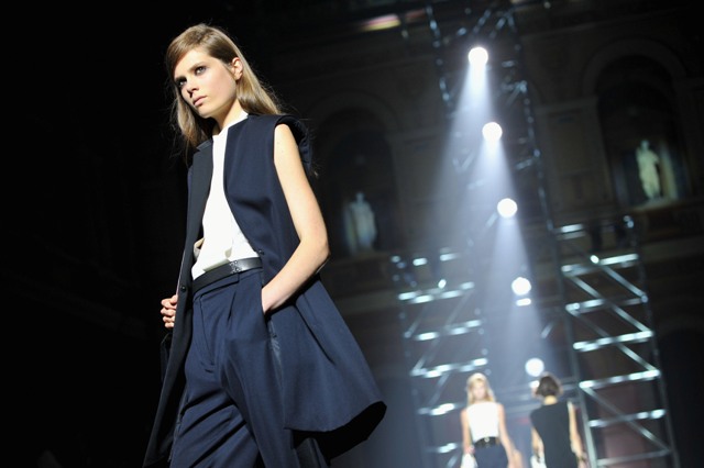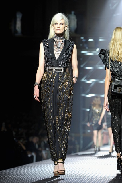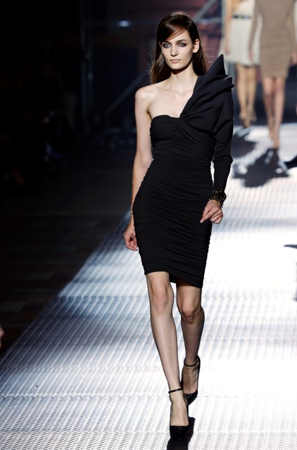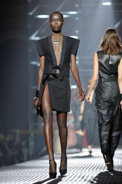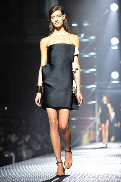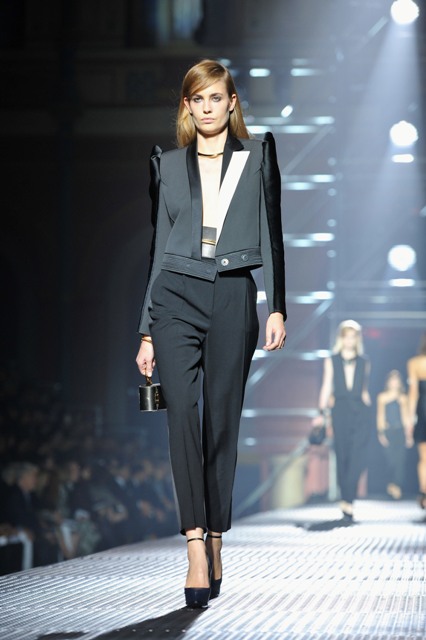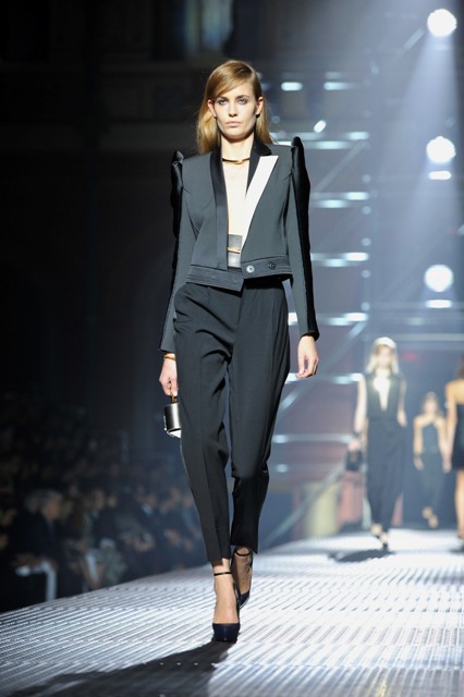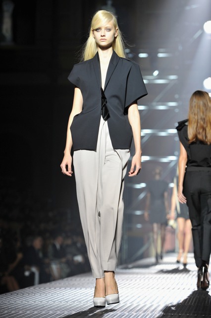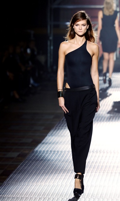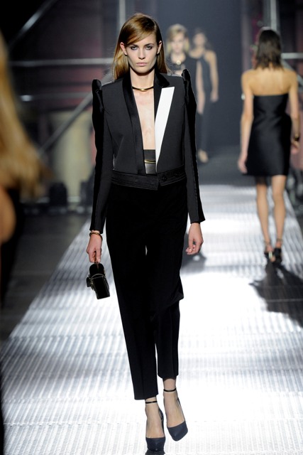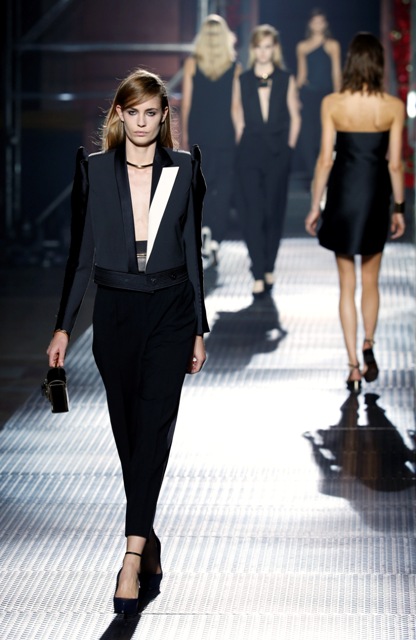 LOVE some of these modified tuxedo pieces. How about that jacket with one white lapel? And that neutral dress with what looks like a black bathing suit covering the left breast? OMG. It won’t be long before we’ll be seeing a lot of this in Hollywood.
