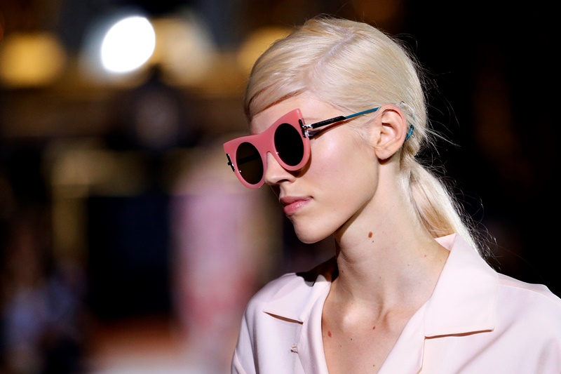 This is going to be a popular collection. The pantsuits, with those great zippers, and Stella’s famous trouser fit, are going to be popular. This dress on Cara Delevingne is going to be popular. Look at that neckline. It’s really good, non? Me I’m really into these sunglasses.