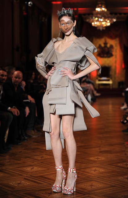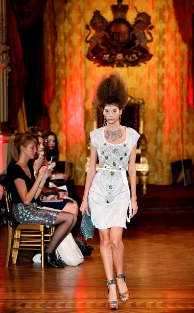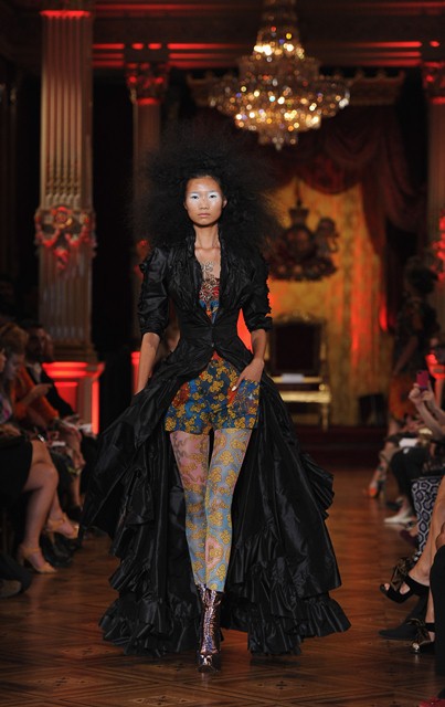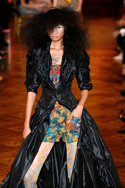 I can’t remember not hating a pair of red shoes as much as I don’t hate these strappy red heels. Probably because the way they’re worn, with all that outrageousness on top, the red isn’t a statement at all.