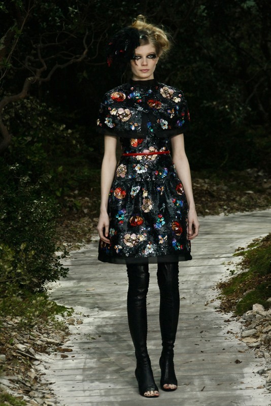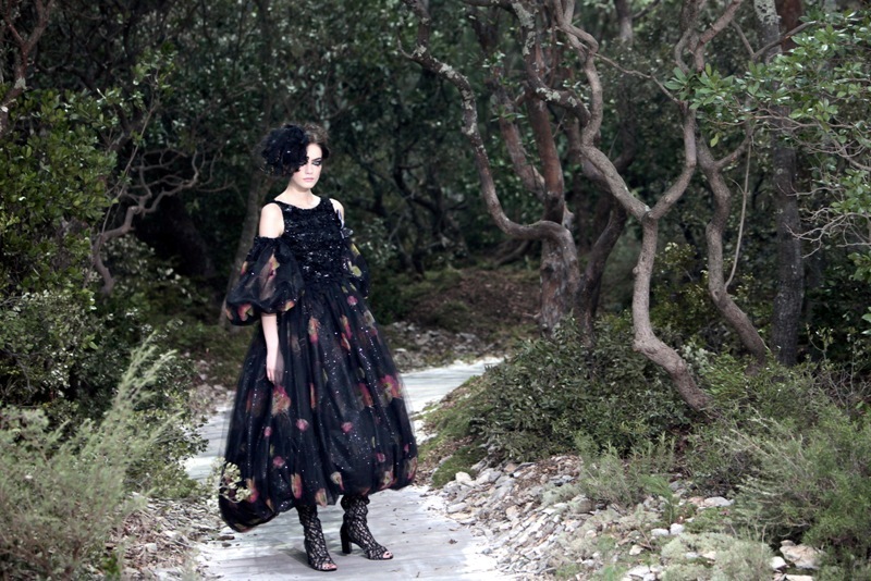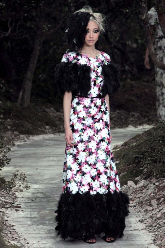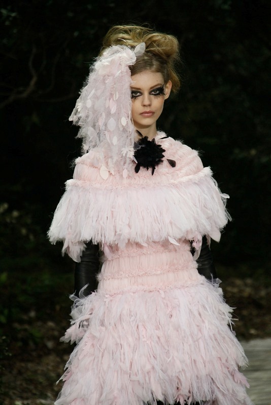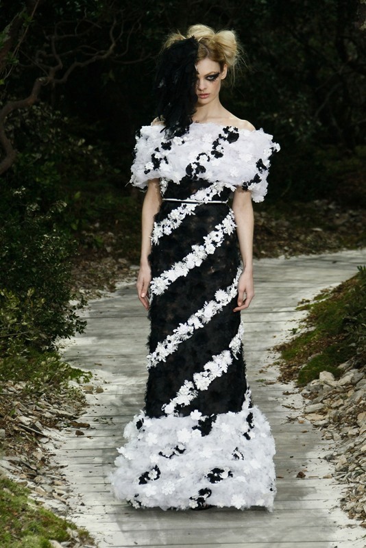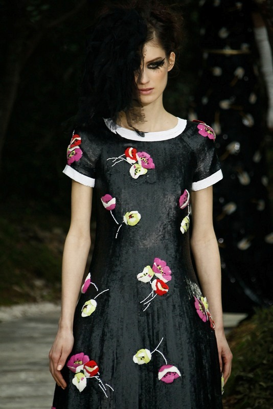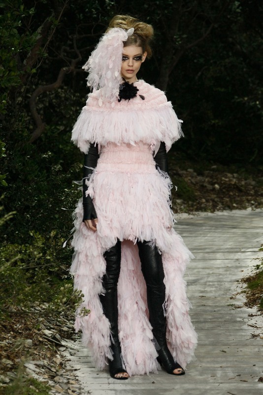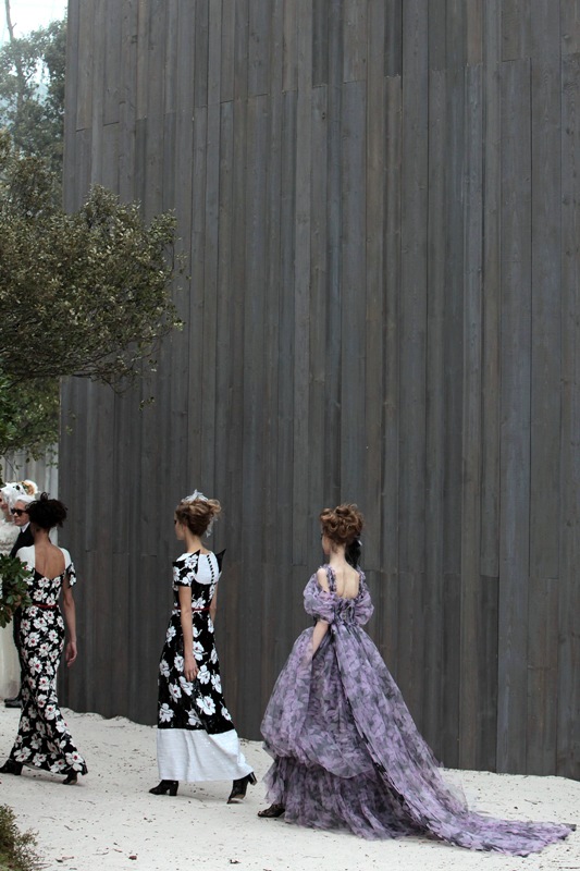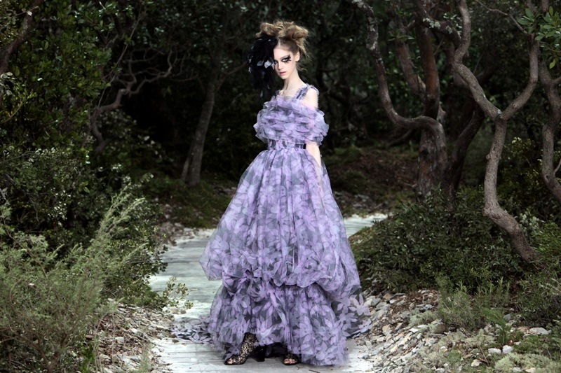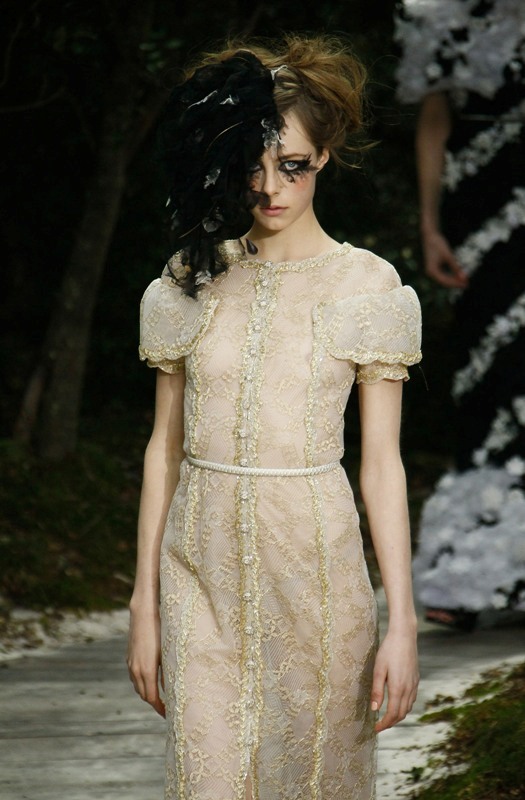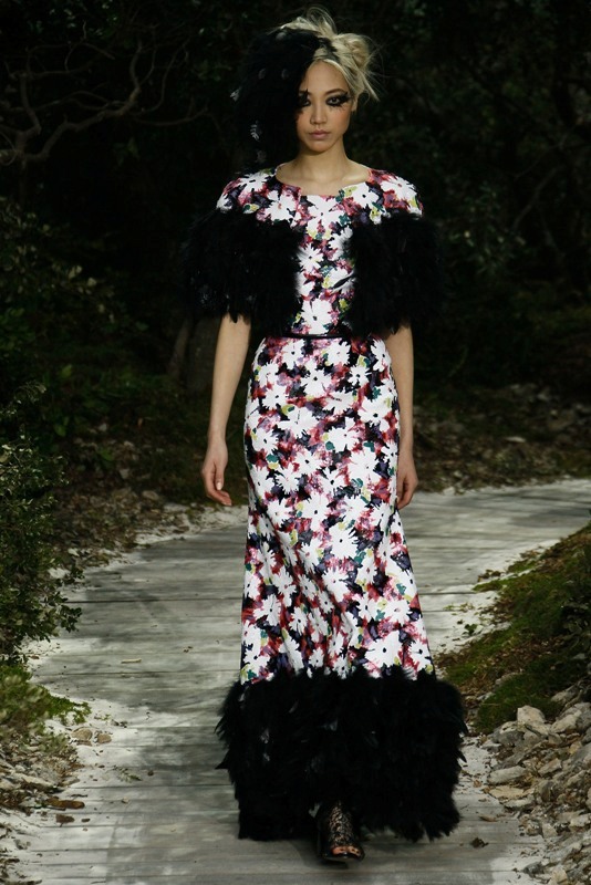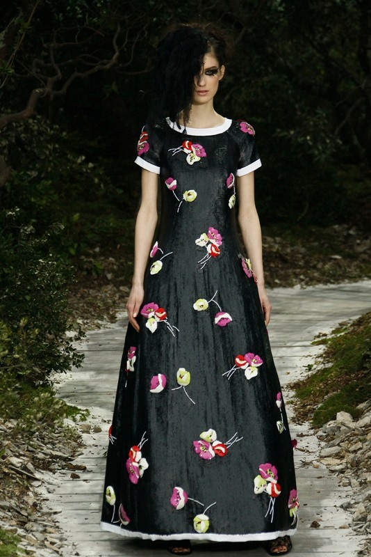 Flowers everywhere! Only Karl imagines it like a demented Alice In Wonderland. Still, I do love the freak whimsy spirit in these pieces. I’ve attached my favourite of all of them first in the series. It’s the one I hope Anne Hathaway wears to the Oscars, just to annoy the f-cking sh-t out of the world. You are clenching your jaw already just picturing it. This is the identity I wish Annie would embrace. Like Gwyneth. You all will find a way to hate her anyway. Why not just take perverse pleasure in it. Probably more fun.