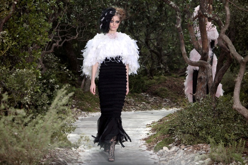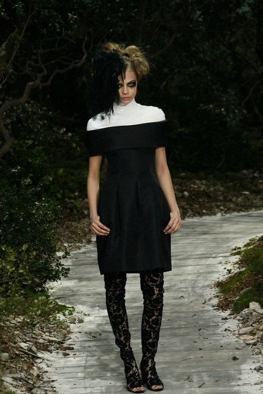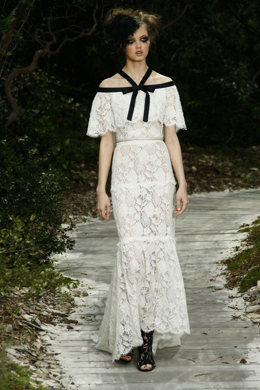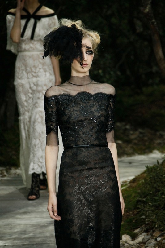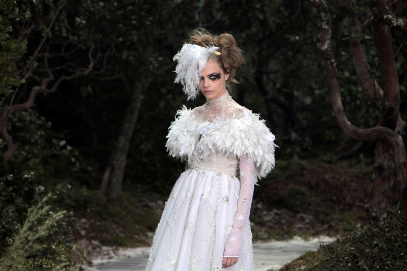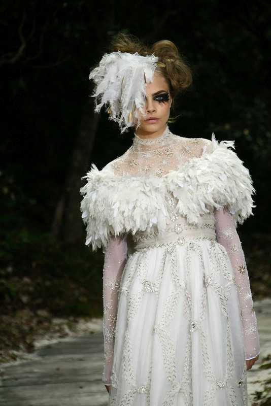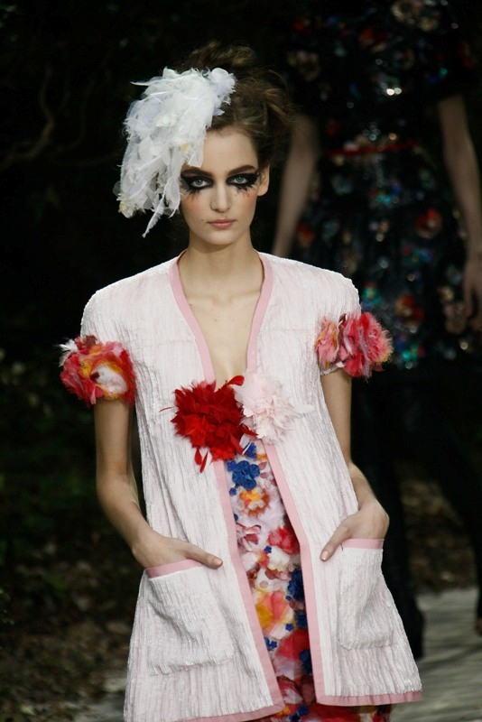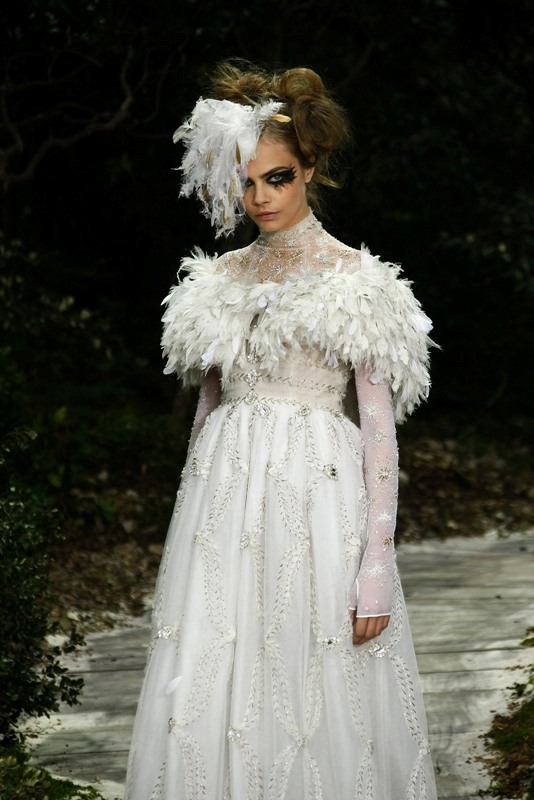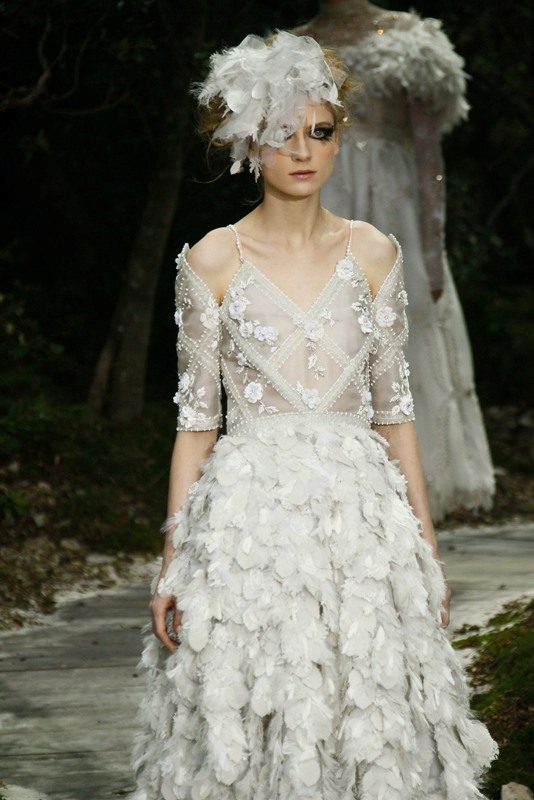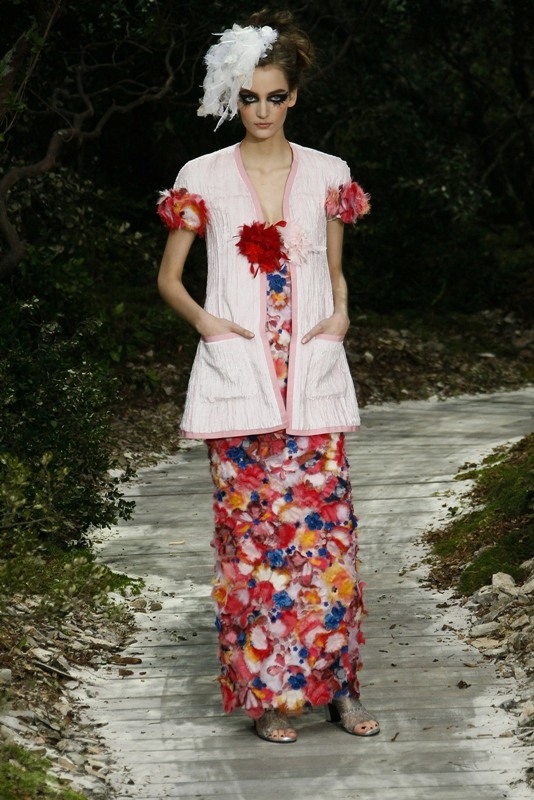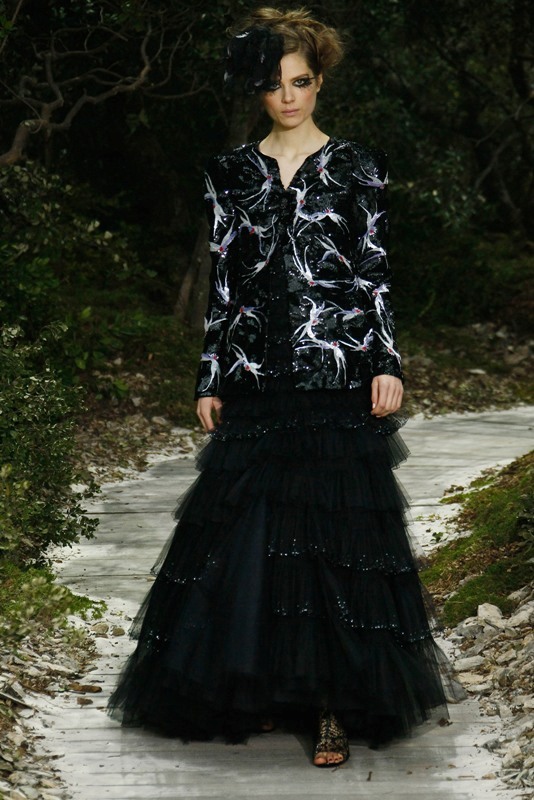 Flowers everywhere! Only Karl imagines it like a demented Alice In Wonderland. Still, I do love the freak whimsy spirit in these pieces. I’ve attached my favourite of all of them first in the series. It’s the one I hope Anne Hathaway wears to the Oscars, just to annoy the f-cking sh-t out of the world. You are clenching your jaw already just picturing it. This is the identity I wish Annie would embrace. Like Gwyneth. You all will find a way to hate her anyway. Why not just take perverse pleasure in it. Probably more fun.
