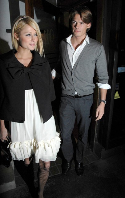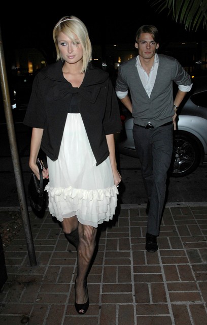 Last night, Paris Hilton trotted her latest victim out for the paps, conveniently during a little visit with her parents who OF COURSE loved the Pizza Boy. As you can see, no photo opportunity was wasted, even though Ebola told Ellen yesterday that she was single.