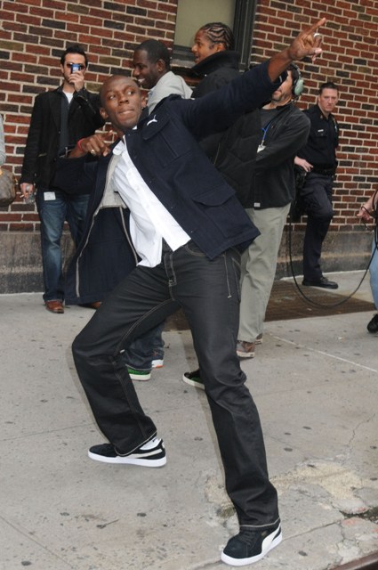 Last night, the country’s reigning sprint god appeared on David Letterman. Also on Letterman? Hollywood’s deadliest disease Ebola Paris Hilton. Check her out all cocked up and uncoordinated arriving at the studio.