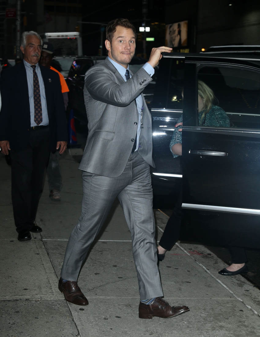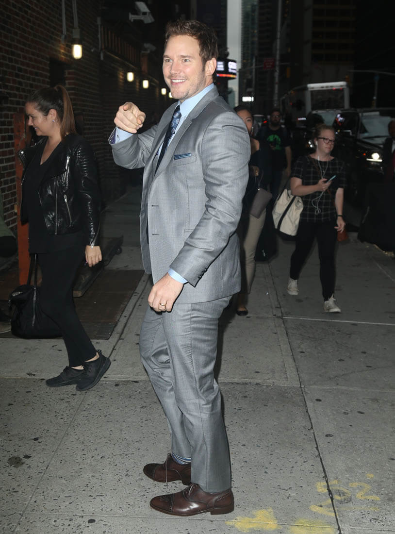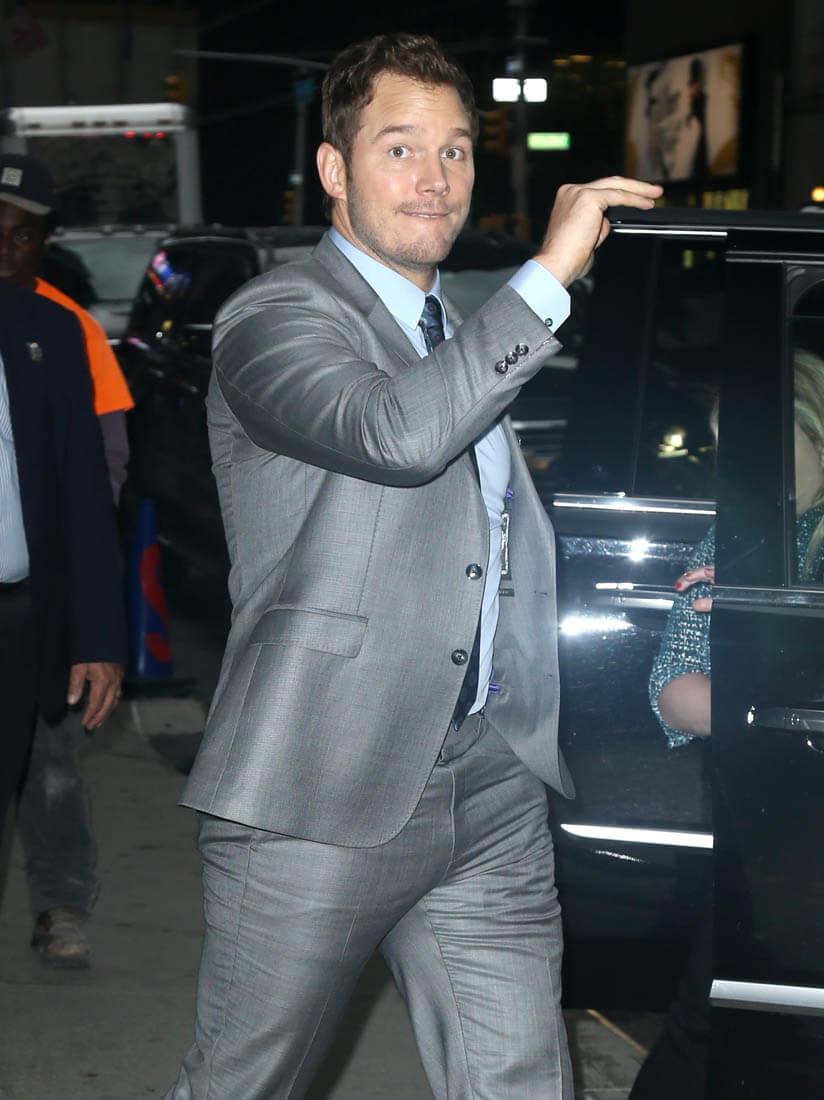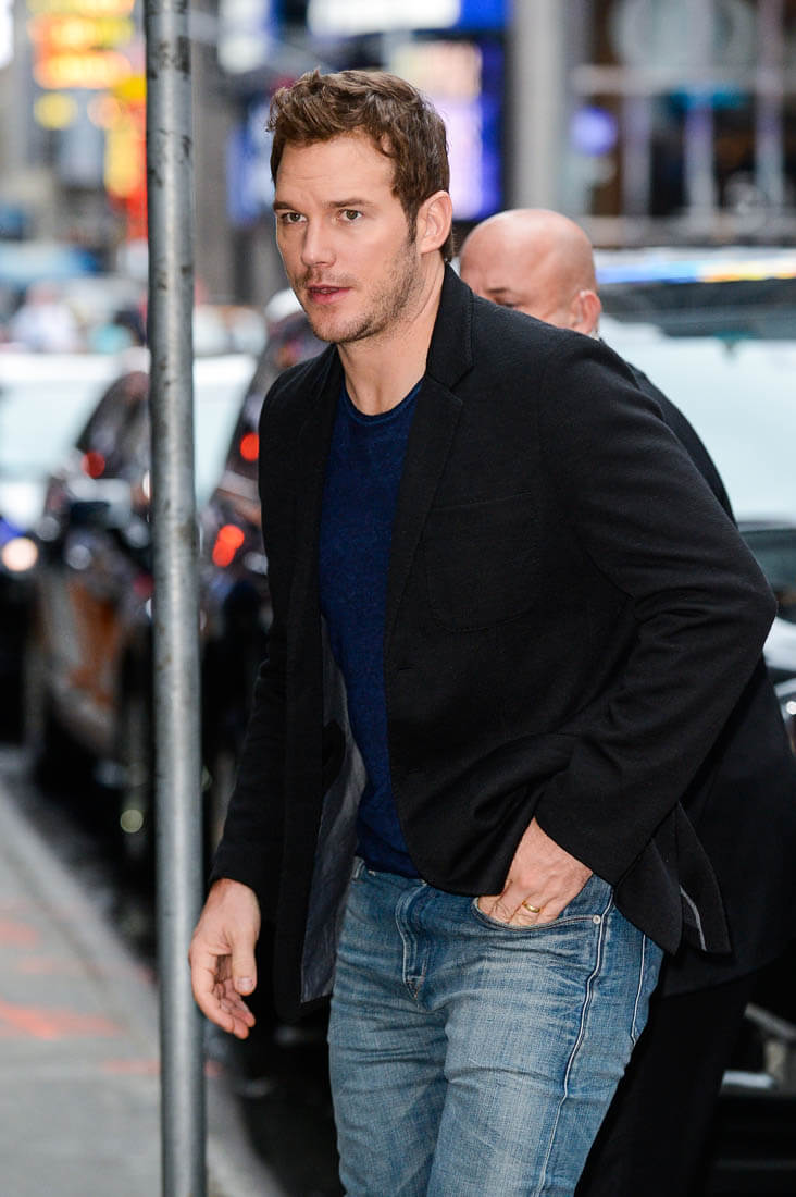Attached - Chris Pratt making the promotional rounds for The Magnificent Seven in New York this morning and last night..