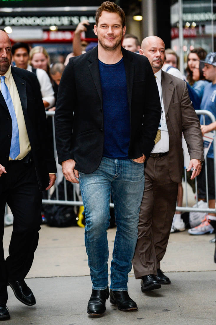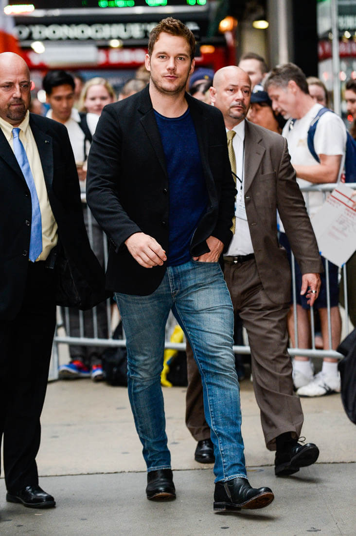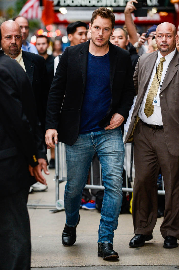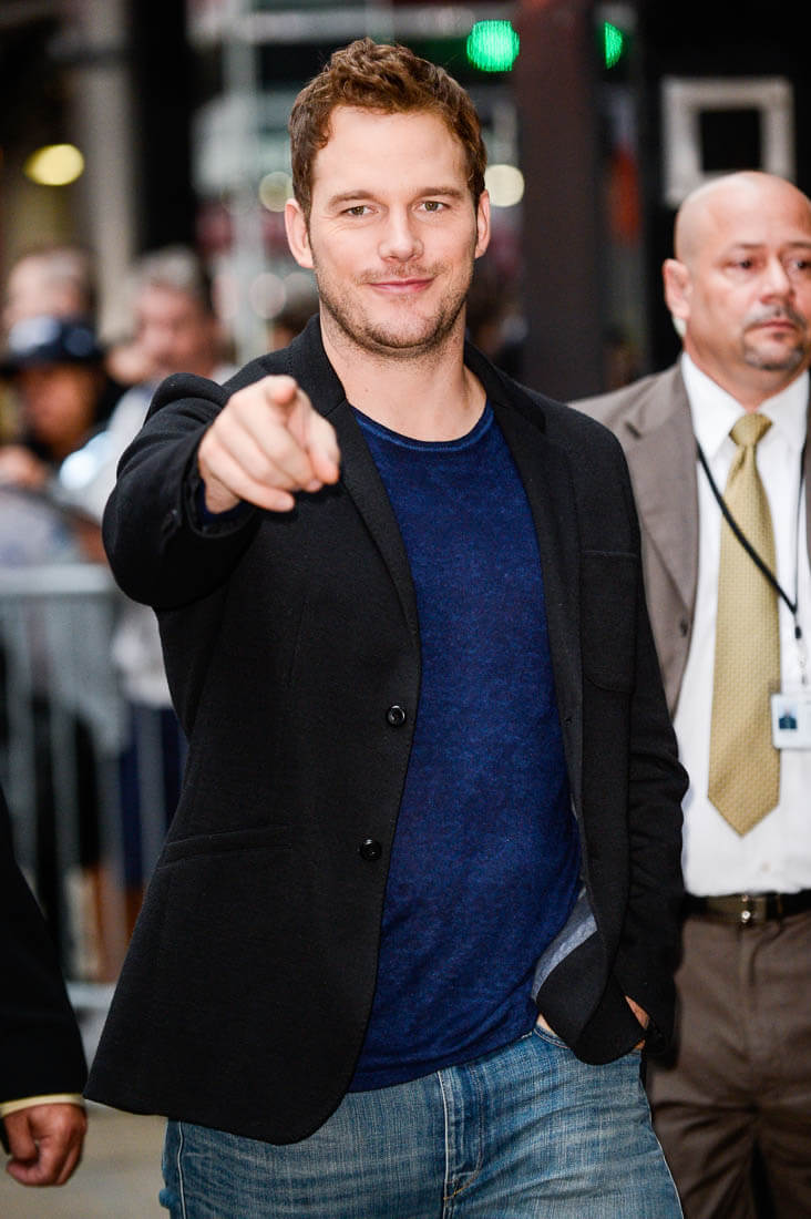 Attached - Chris Pratt making the promotional rounds for The Magnificent Seven in New York this morning and last night..