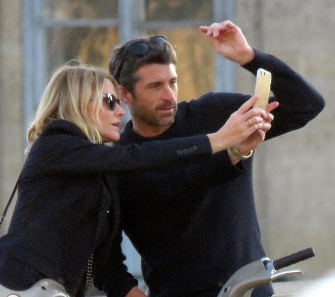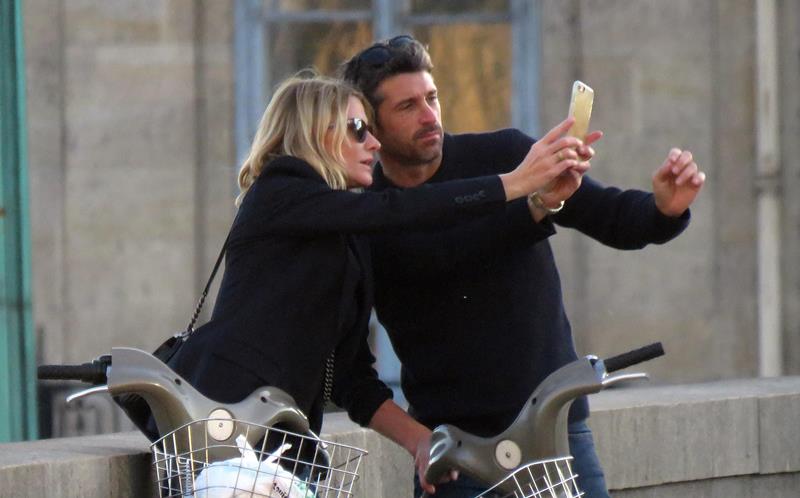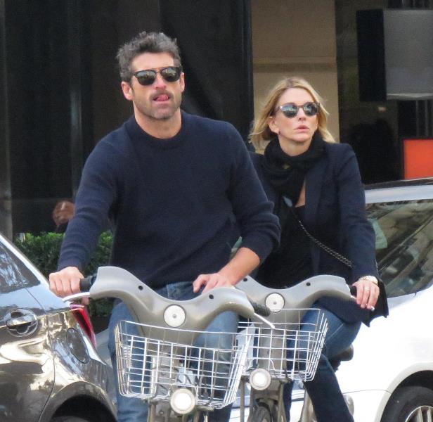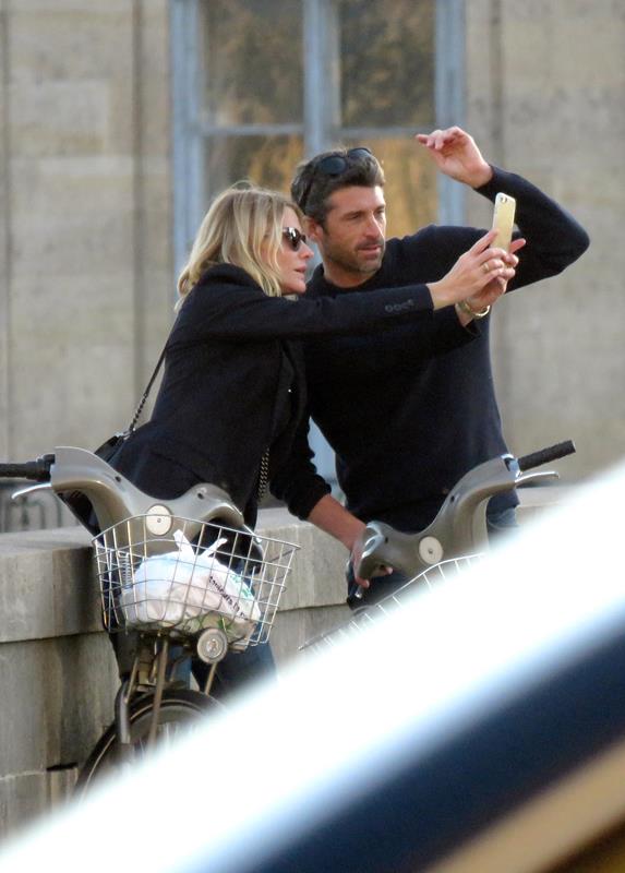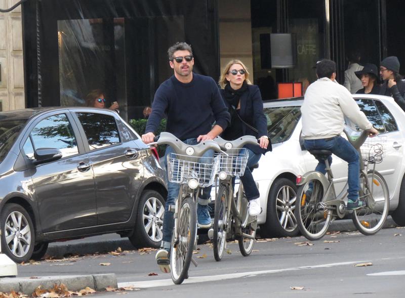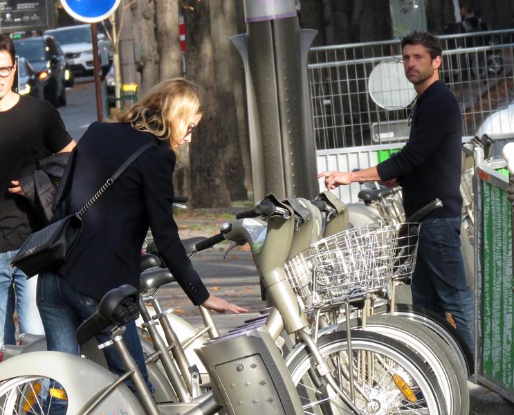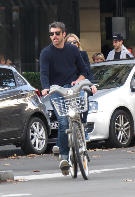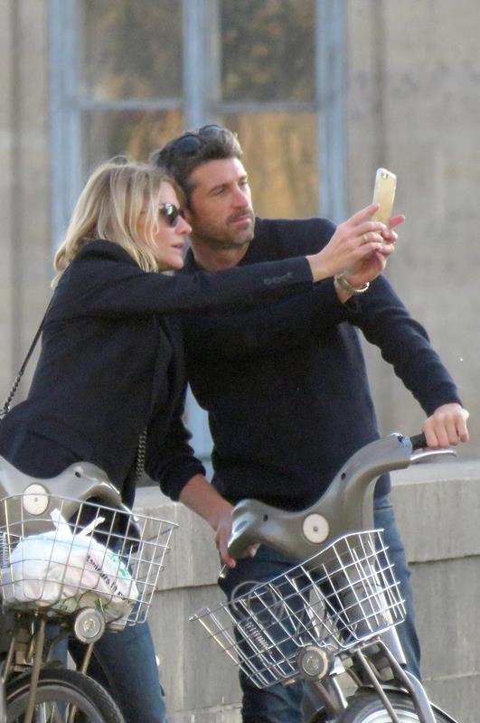 Because check him out in Paris this weekend with Jillian. Patrick has been in the UK shooting Bridget Jones’s Baby. Jillian is a makeup artist. She works with Jennifer Lawrence and Kristen Stewart, both of whom are in Europe. So they went for a bike ride. They took selfies. They were seen holding hands. Is the divorce cancelled because he realised he was an asshole and showed that he doesn’t have to be one anymore? Can an asshole stop being an asshole? Or is it just that assholes go on break?