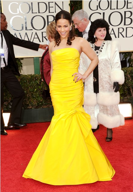 Paula Patton was involved in every single award. Because she was seated right up front - NO ONE KNOWS WHY - in her big ass yellow dress, inserting herself into every goddamn shot. And then she presented. With some kind of Broadway intonation - think Neil Patrick Harris - and BIT HER LIP during the delivery...
