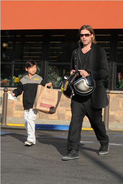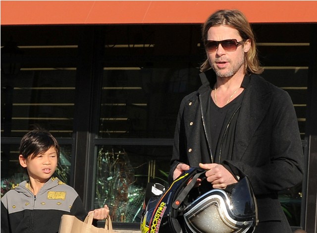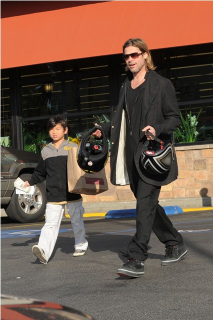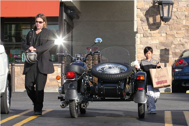 Pax Pitt’s riding sidecar and making his dad his the bitch. But SO cute, right?
