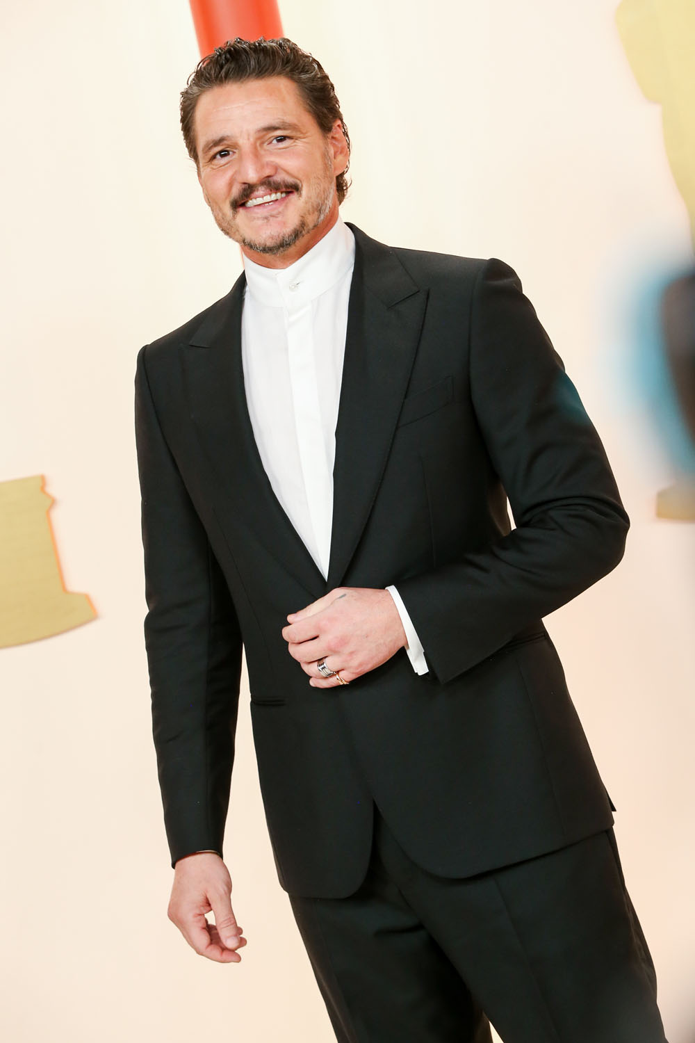 Pedro’s Oscar fit was also a winner. No tie, but a high collar that almost functioned like a turtleneck and pants that fall longer on the leg, bunching at the ankles, signaling that the time of above of the ankle pants on men may be coming to an end. Because Daddy Pedro says so.