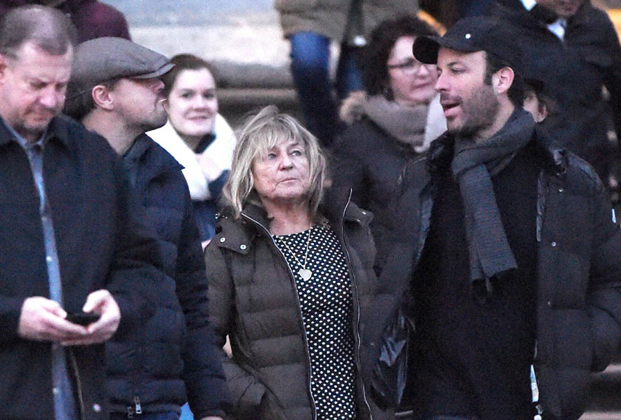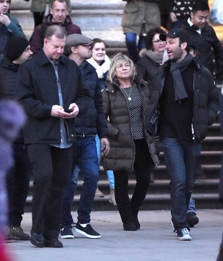 Here he is with his ma and his boys the other day sightseeing in London after his win at the BAFTAs. You can see the ever-faithful Lukas Haas lurking in the background, as usual. And Scott Bloom’s there too. Scott Bloom, you’ll recall, was in Don’s Plum, that film Leo and Tobey don’t want you to see. Scott’s an original member of the Pussy Posse.