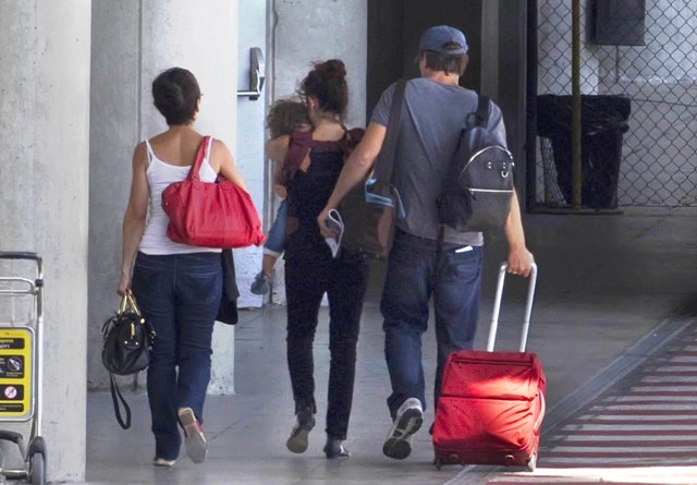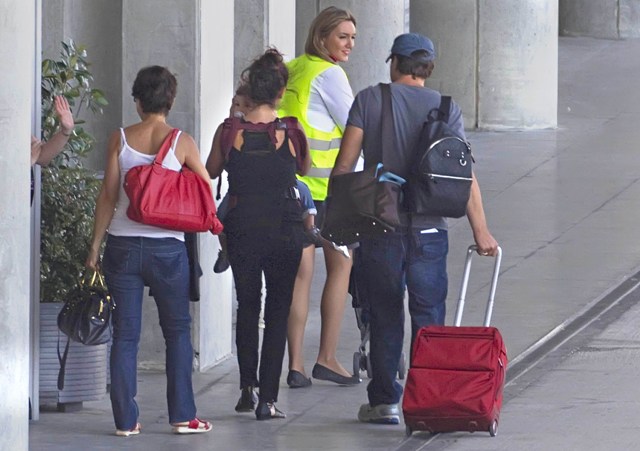 Here are Penelope Cruz, Javier Bardem, and their little Leo heading out of Madrid last week. To Rome With Love opens in limited release on June 22. There should be a promotional appearance for it coming soon. Or several.
