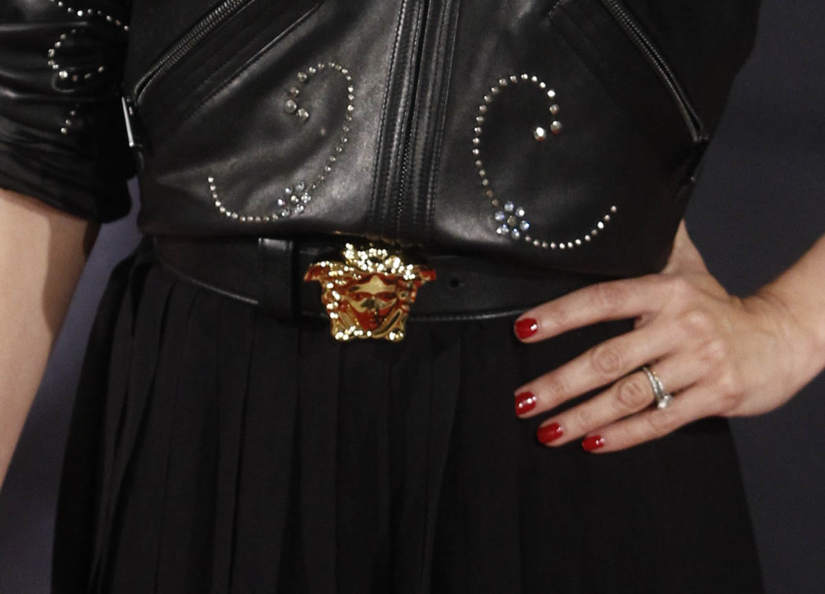Which is why I got really hard when she showed up at the Loving Pablo photo call yesterday in Madrid in this leather bomber, over a short flirty skirt with a gold belt buckle and high boots. RIGHT?!?