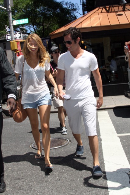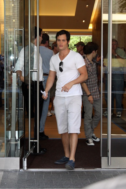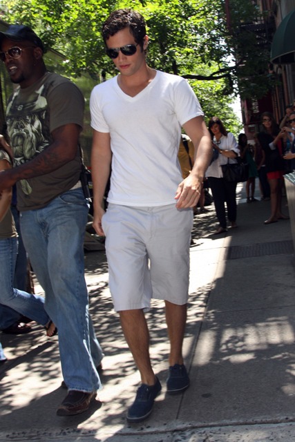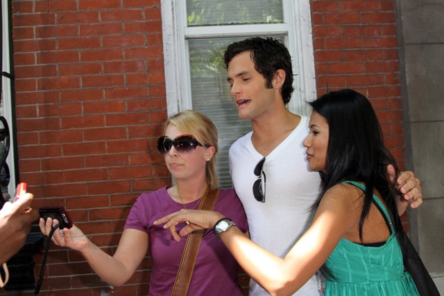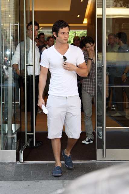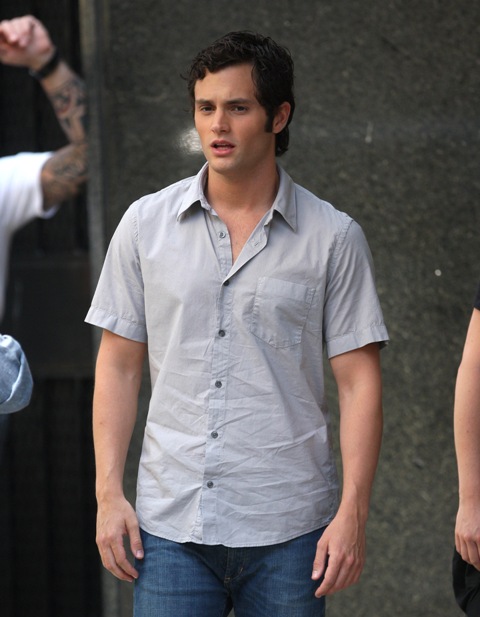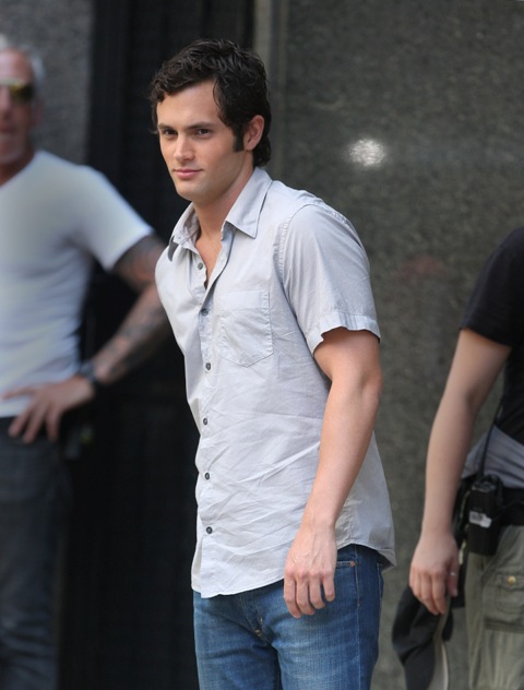 Today, Penn Badgley (with boring Blake) showed up on the set of Gossip Girl Season 3. He’s grown out the sides. And he too has officially joined the Elf Epidemic. All the young men these days, all of them so pretty, and elfy, all of them of no discernible gender. Totally asexual. And it still doesn’t help his face fit his head. Why is it so curiously small? Freaks me out.