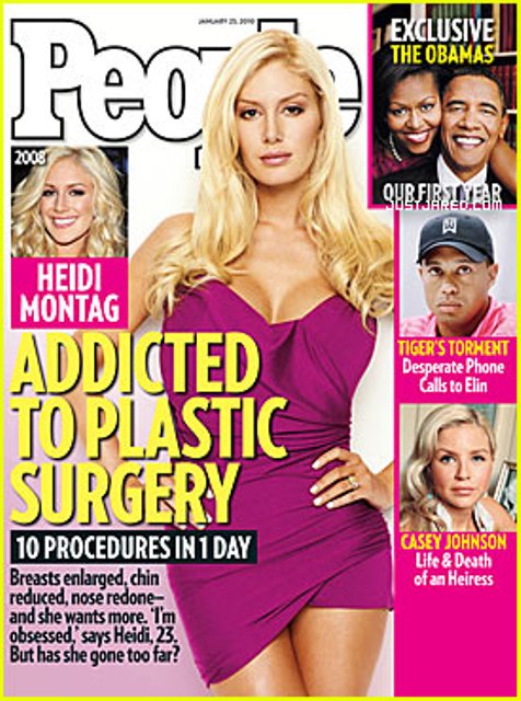 Something about how she’s mangled her body, a salacious headline subtly designed to promote her new album. Heidi Montag. The week of the Golden Globes. Gets her own cover...?
