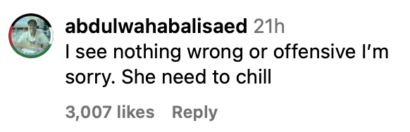Then there’s this comment, instructing Cynthia to ‘chill’ because they see ‘nothing wrong or offensive’ with the edit: