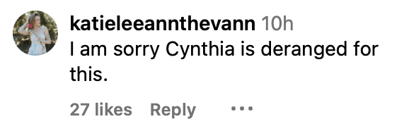 And this commenter calls Cynthia ‘deranged’ for having the reaction she did: