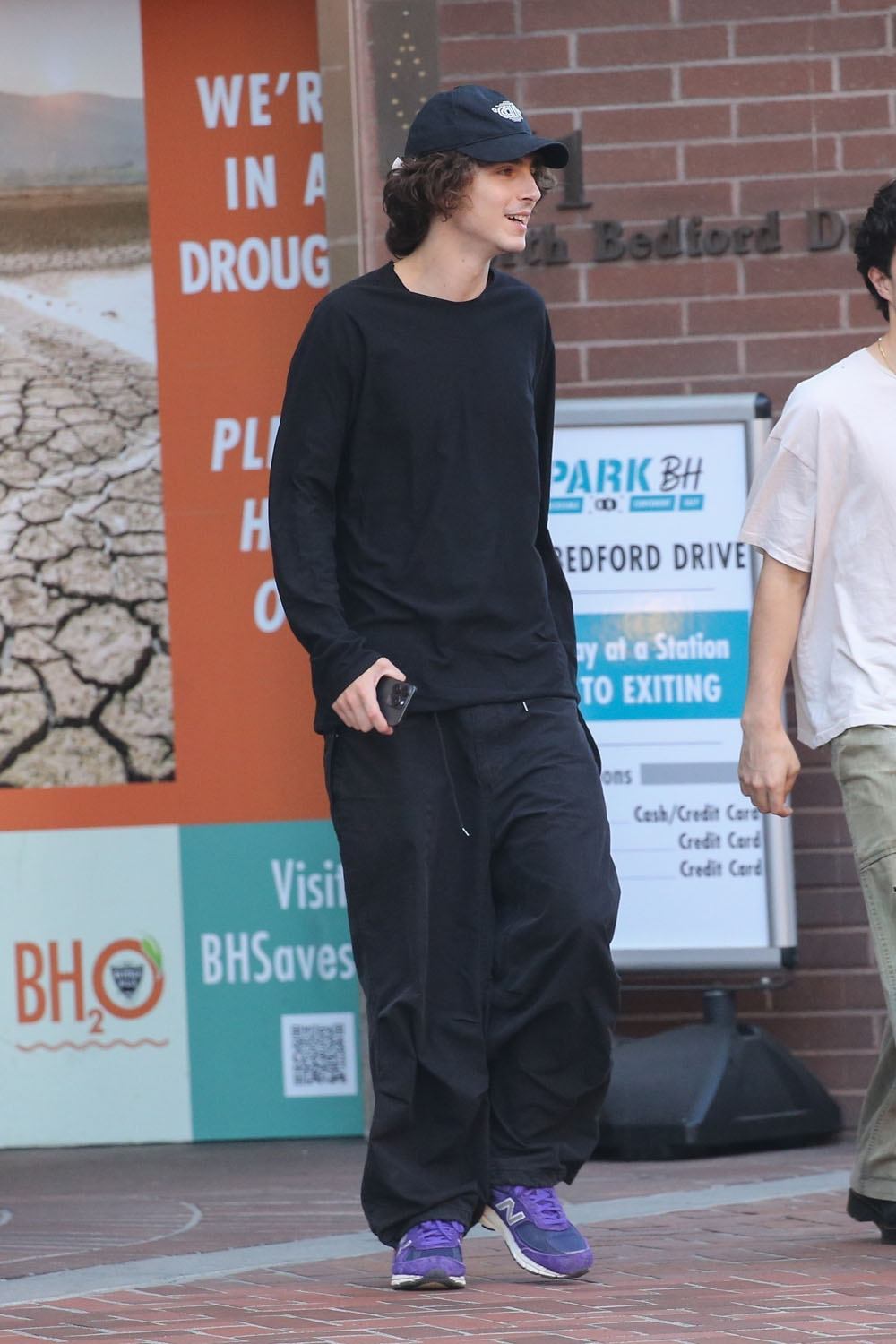 Timothée Chalamet is back in LA after a few weeks on the road promoting Wonka. The final stop on the Wonka press tour is Hollywood, ahead of its North American release date on December 15. He’ll be on the red carpet tomorrow and junketing this weekend. Here he is in Beverly Hills yesterday catching up with some friends.