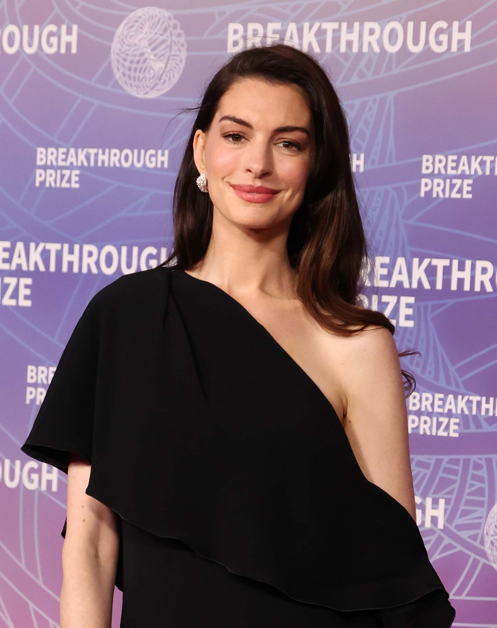 Anne Hathaway attends the 12th Breakthrough Prize Ceremony at Barker Hangar on April 18, 2026 in Santa Monica, California