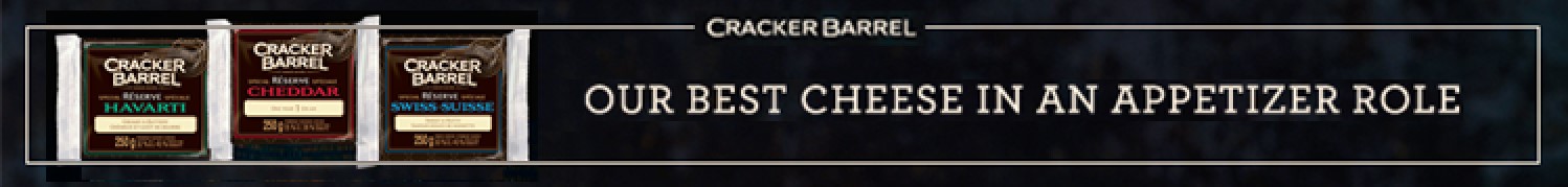 Cracker Barrel Special Reserve has some great suggestions for make-ahead platters so you don’t have to spend all of Sunday afternoon getting ready to serve your guests. Try a great cheese tray that blends all of their cheeses into an option filled spread. How? To prepare a cheese tray for 30 servings, just follow our three easy steps: