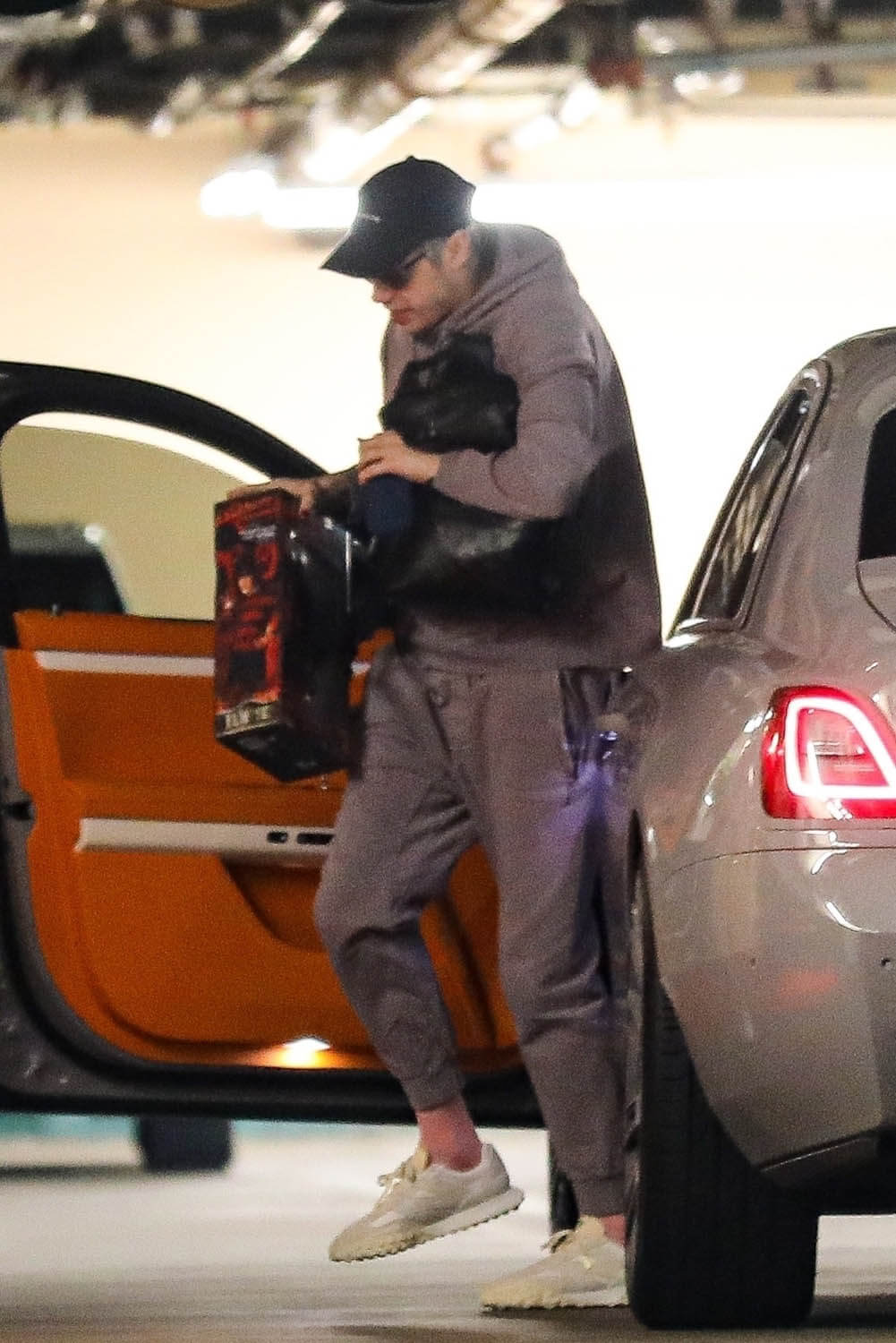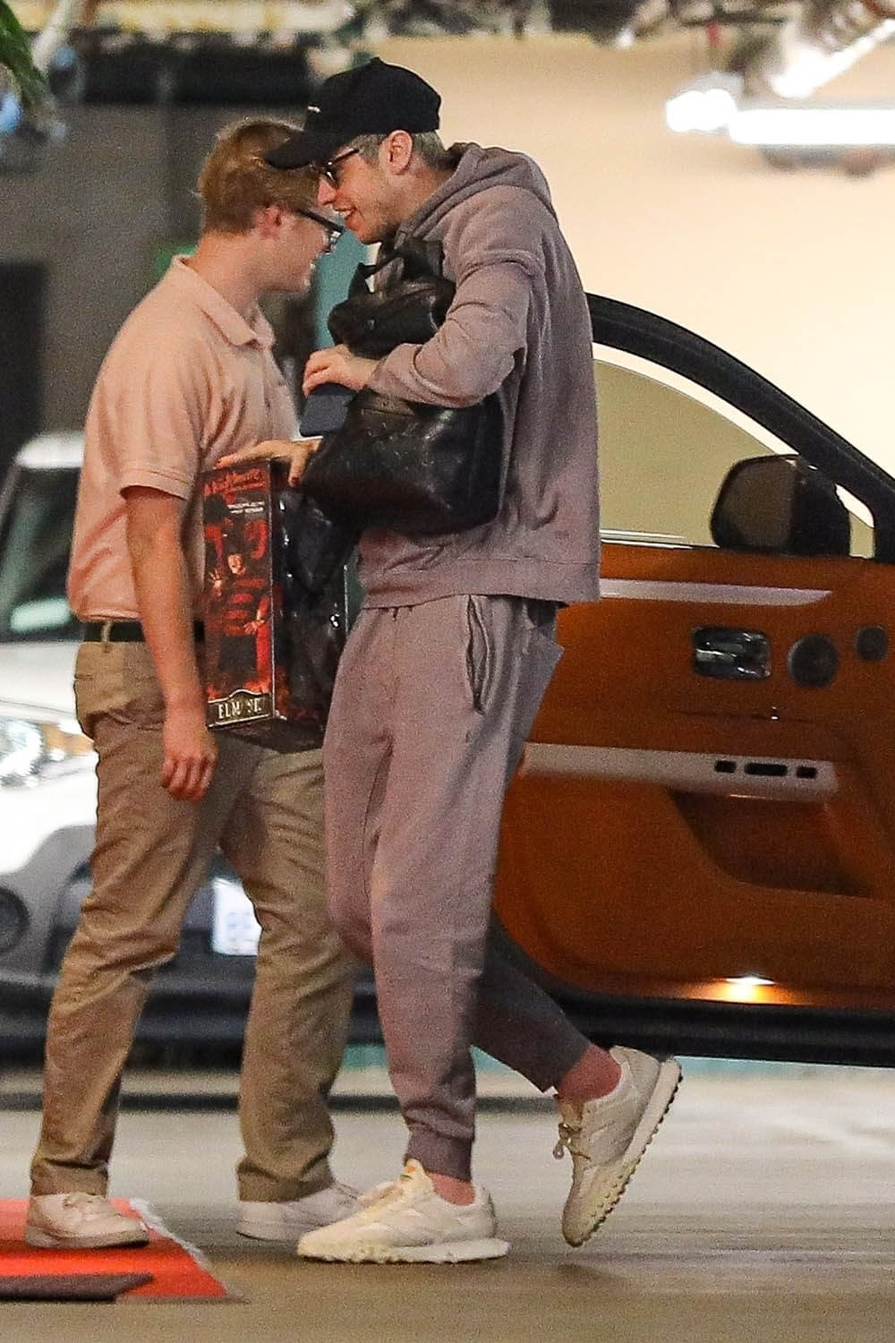After spending last weekend in New York, when Saturday Night Live had to pivot after a COVID outbreak, Pete Davidson headed back to Los Angeles with Kim Kardashian where he’s been for the last few days, photographed several times driving around town in her Rolls Royce. He went jewellery shopping on Monday. And yesterday was papped again picking up more gifts, including a Nightmare on Elm Street costume.