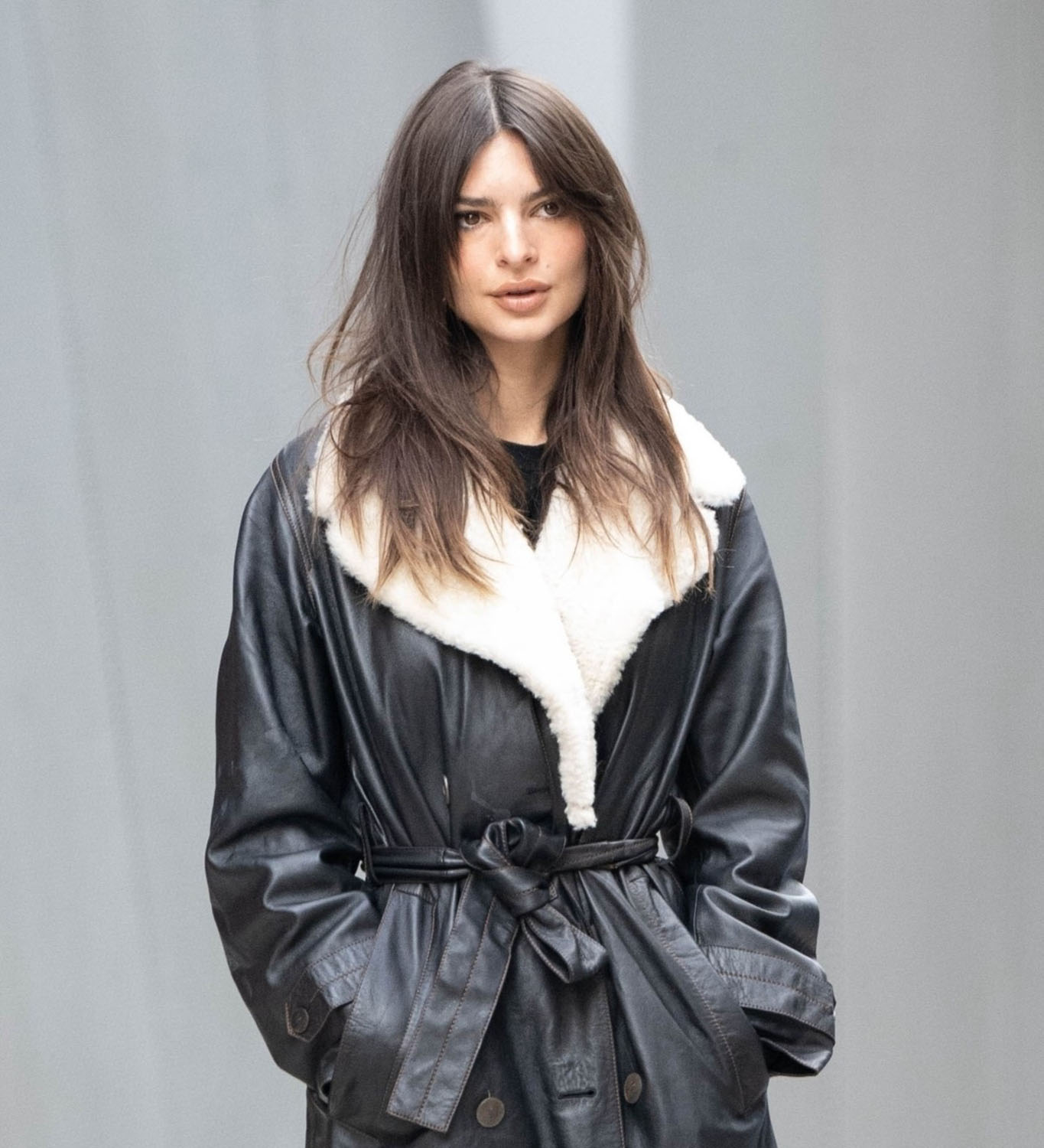 Presumably because she had work this morning. Emrata was seen first thing out for a shoot, in a leather coat and yellow boots. She stepped out again before noon in a cut-out dress, so the takeaway here, I guess, is that whatever she was up to with Pete on his birthday wasn’t stopping her for doing her thing the next day.