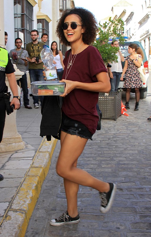 Peter Dinklage, Emilia Clarke, Iain Glen, Nathalie Emmanuel, and several other cast members from Game Of Thrones were photographed in Seville, Spain yesterday working on season 5. PopSugar posted pictures from the set the other day – click here to see. Tyrion and The Khaleesi are hanging out now? I like it. I like that she might be his protector.