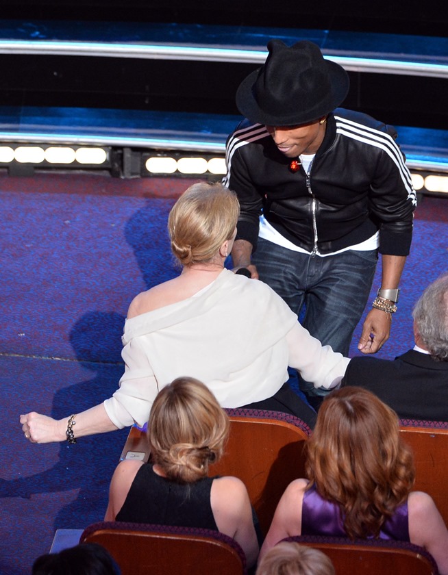 Pharrell, you beautiful creature, you. You are the embodiment of exactly what it’s supposed to be to be a celebrity. You show up to places, and you are pleased as hell with your accomplished-yet-relaxed-appearing life, and you wear still more compelling-yet-not-serious stuff, and you’re also – almost incidentally – phenomenally successful. You are doing it right, and I am thoroughly impressed.