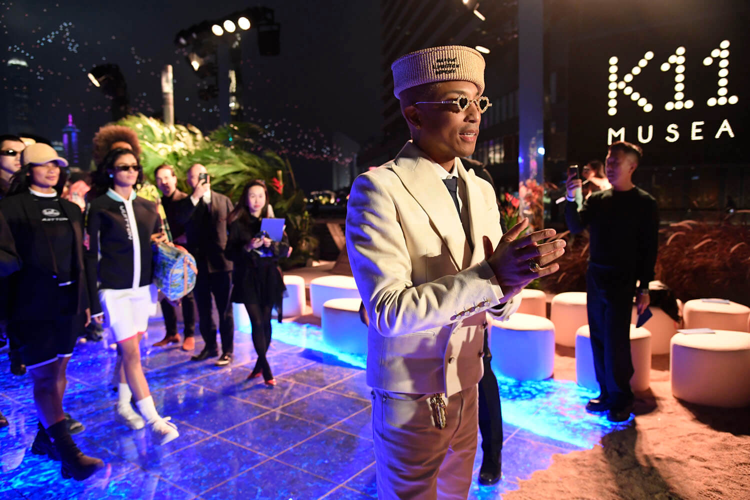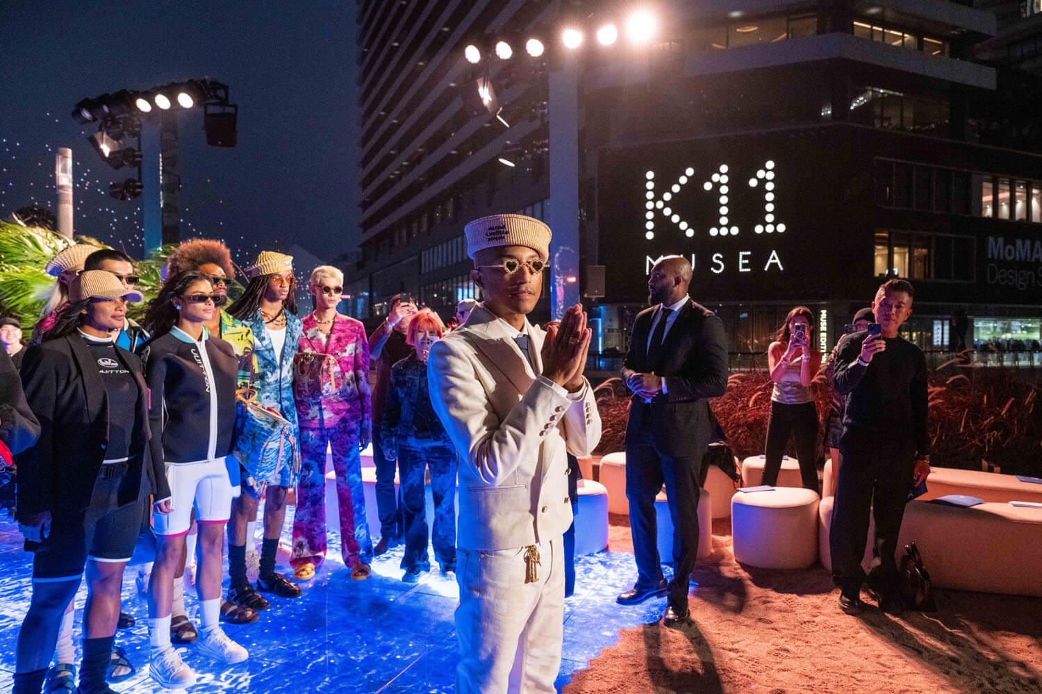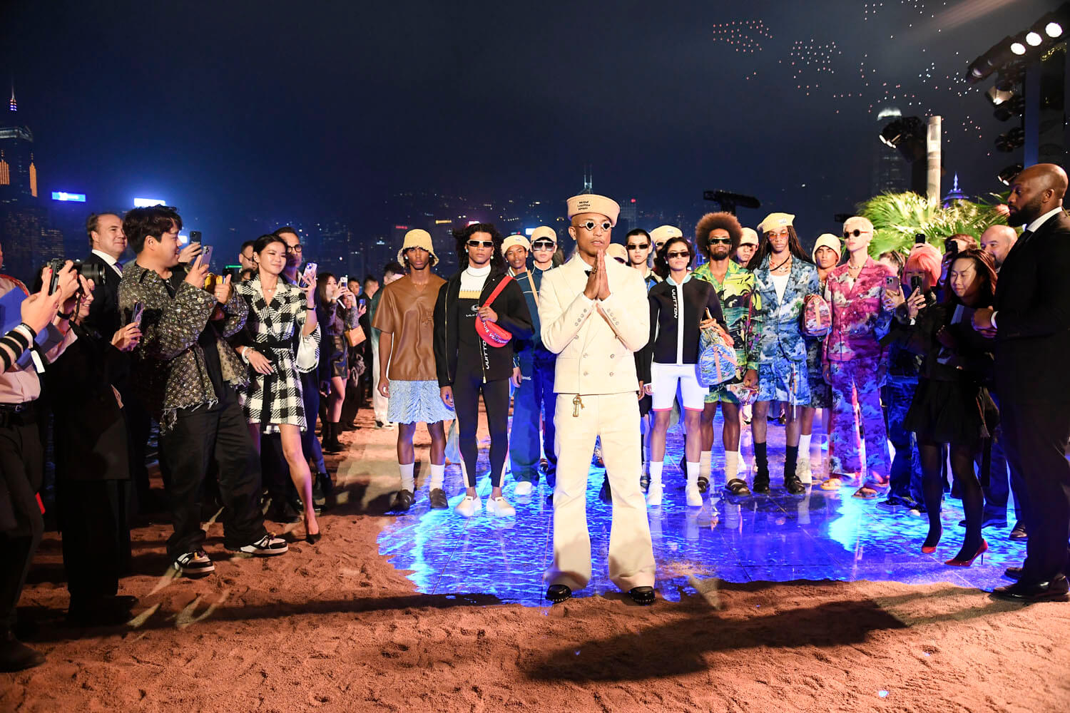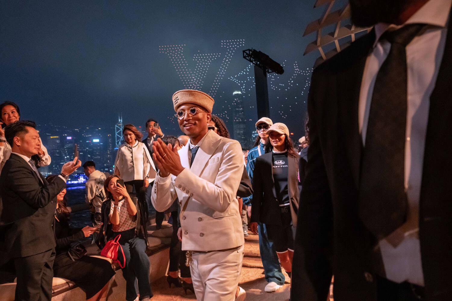 And the light was on – in the form of drones that took shape towards the end of the show, first forming a junk boat, basically the signature symbol of Hong Kong, and then turning into the instantly identifiable LV monogram, before becoming Pharrell’s LV signature… LVers. You can see the drone show starting at around the 12-minute mark of the video below, or just watch the whole thing if you have time because it’s a visual delight, not just because of the clothes but because of the city. This is the famous Hong Kong skyline, majestic and vibrant.