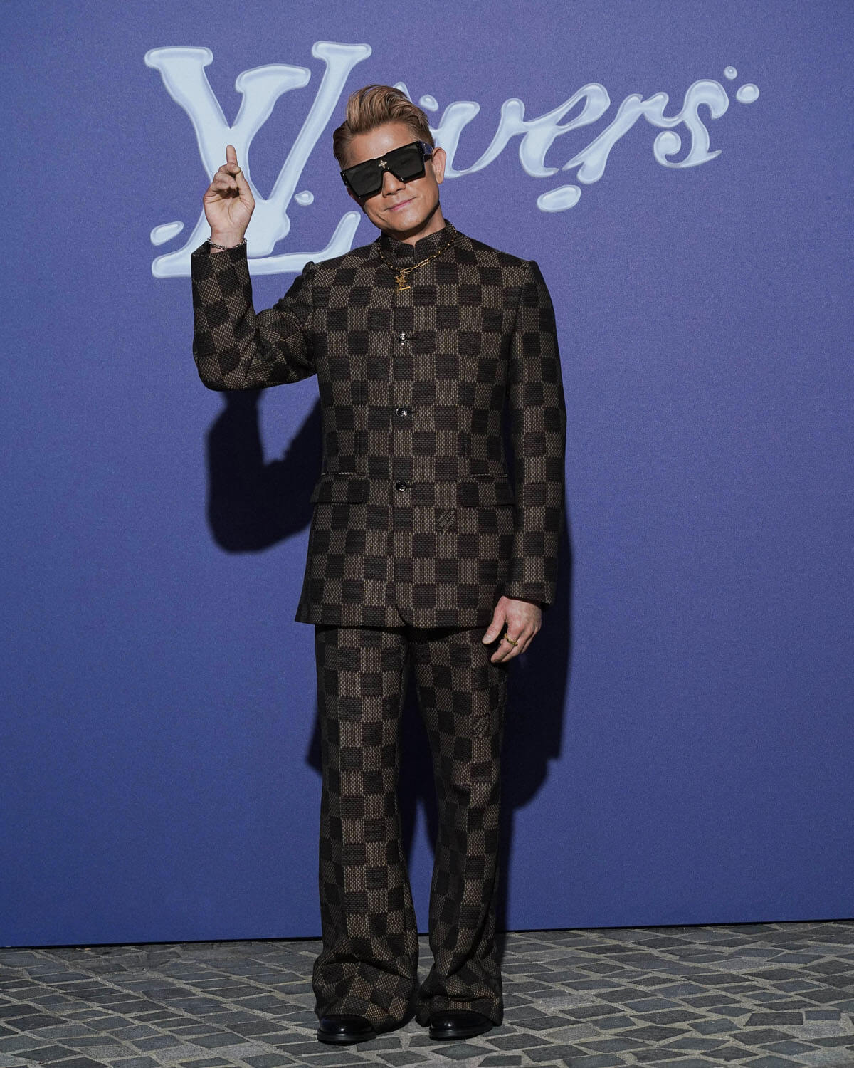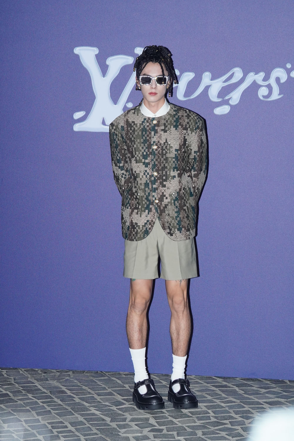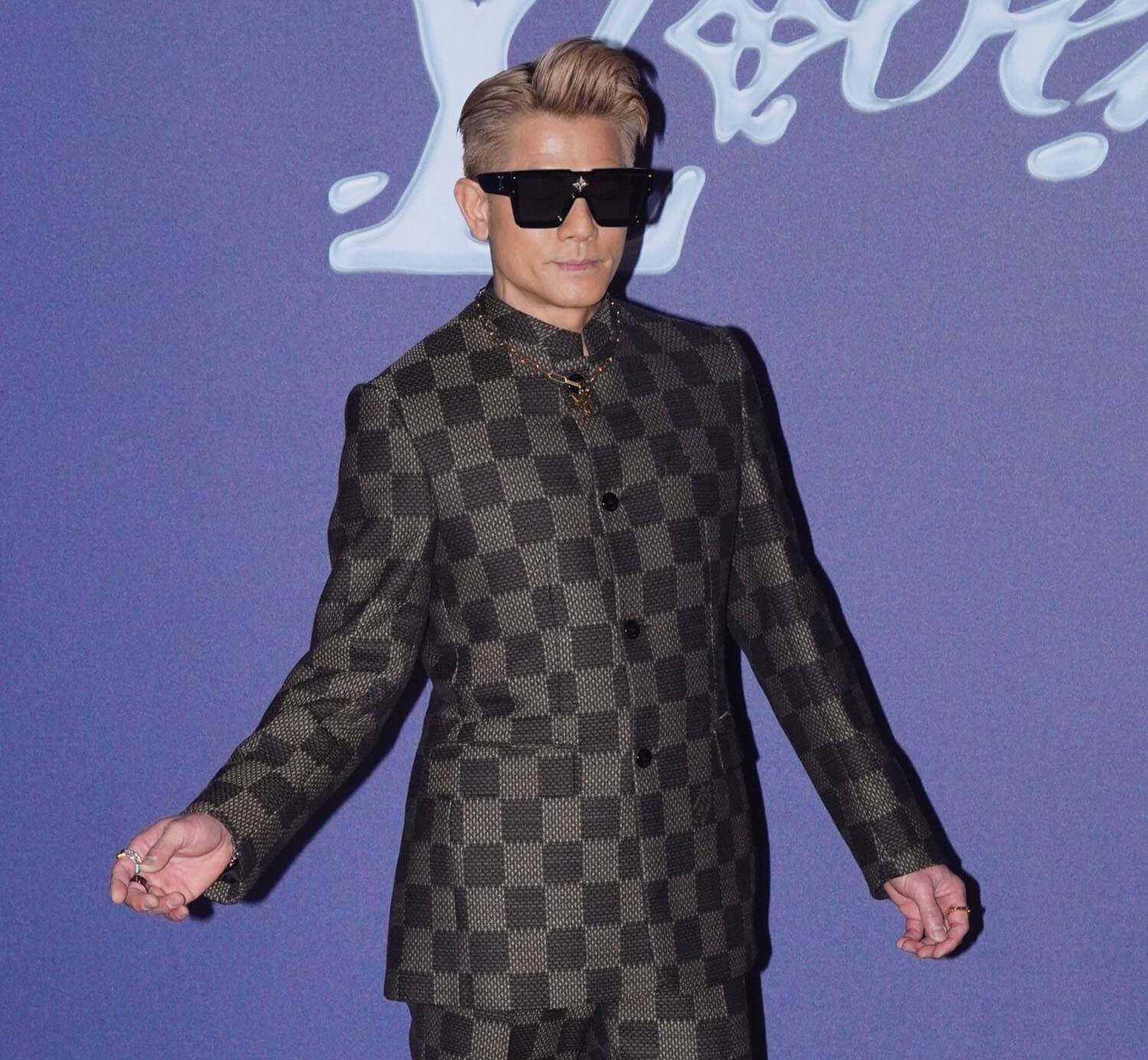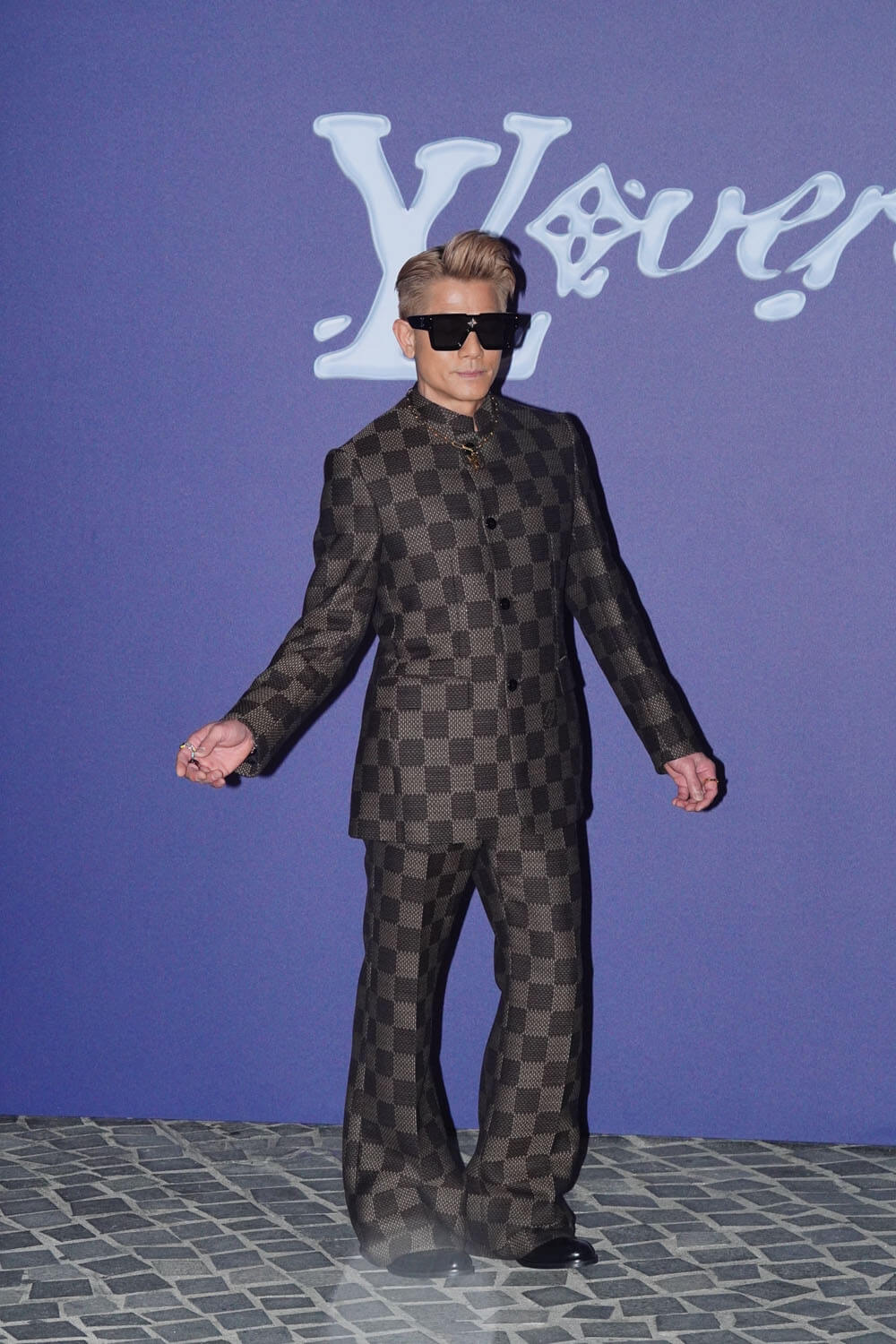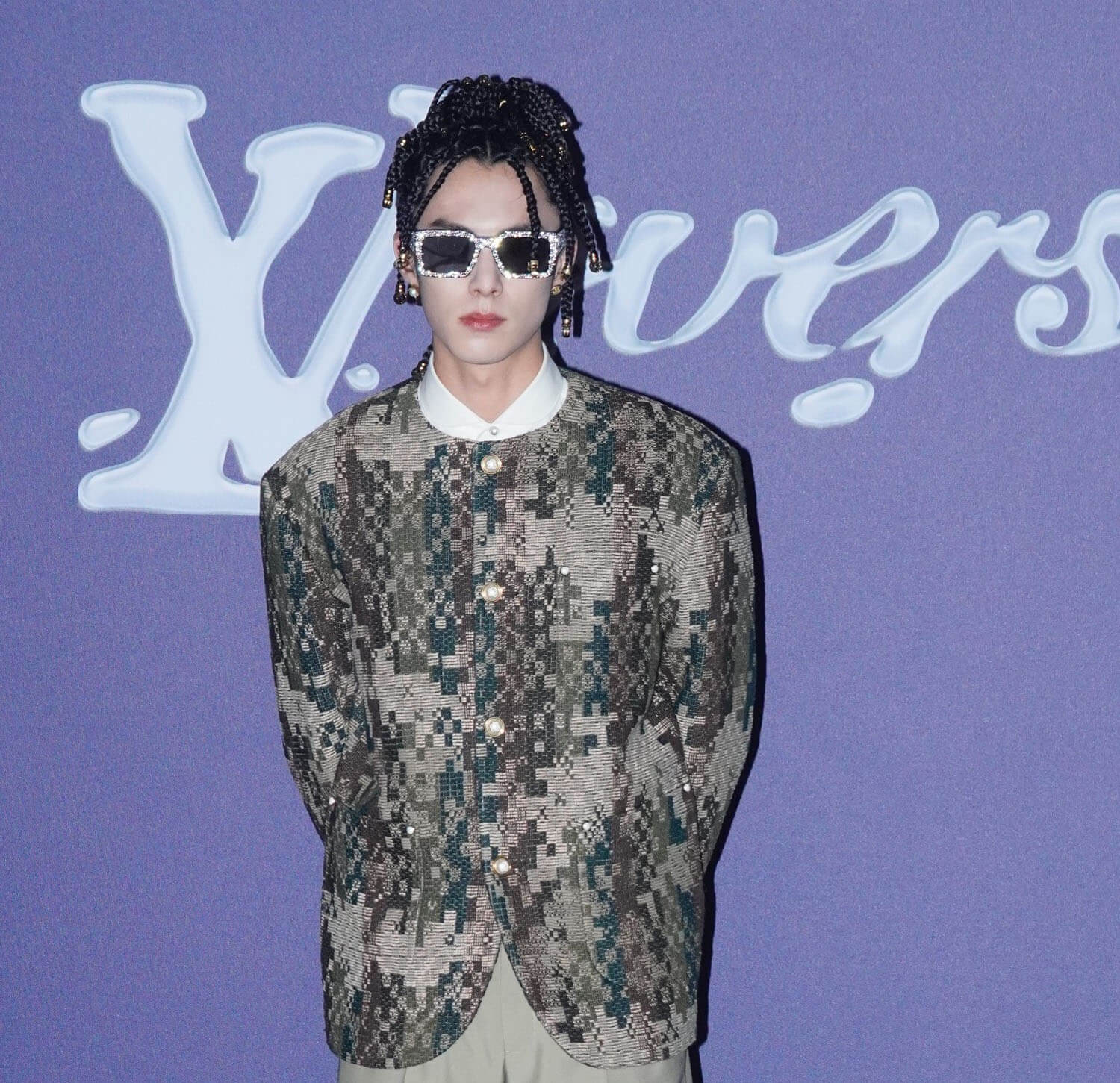 Anyway, as you can see, it’s LV pattern on a mandarin collar suit, an excellent example of harmonious merging energies: LV’s signature with Chinese culture. Less excellent, however, might be Dylan Wang Hedi.