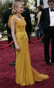 I love this colour. I love how she wore it. I love how her sleeves fanned out when they caught a light breeze. I love how in love they are. Once a year I like to be naïve. I want to believe that he adores her. I want to believe they’ll be together forever - a new ubertalented Hollywood power couple. Which is why I’m kinda happy she didn’t win tonight. Marisa Tomei for Best Supporting Actress. Need I say more?? Sorry…one last thought. Does anyone else find it strange that Busy Phillips follows Michelle Williams EVERYWHERE? The girl has been to EVERY awards show this season. And she had a FRONT ROW SEAT at the Oscars. Busy Phillips had a better seat than Matt Dillon – who was actually NOMINATED. Is this OK? Is it really, gossips???