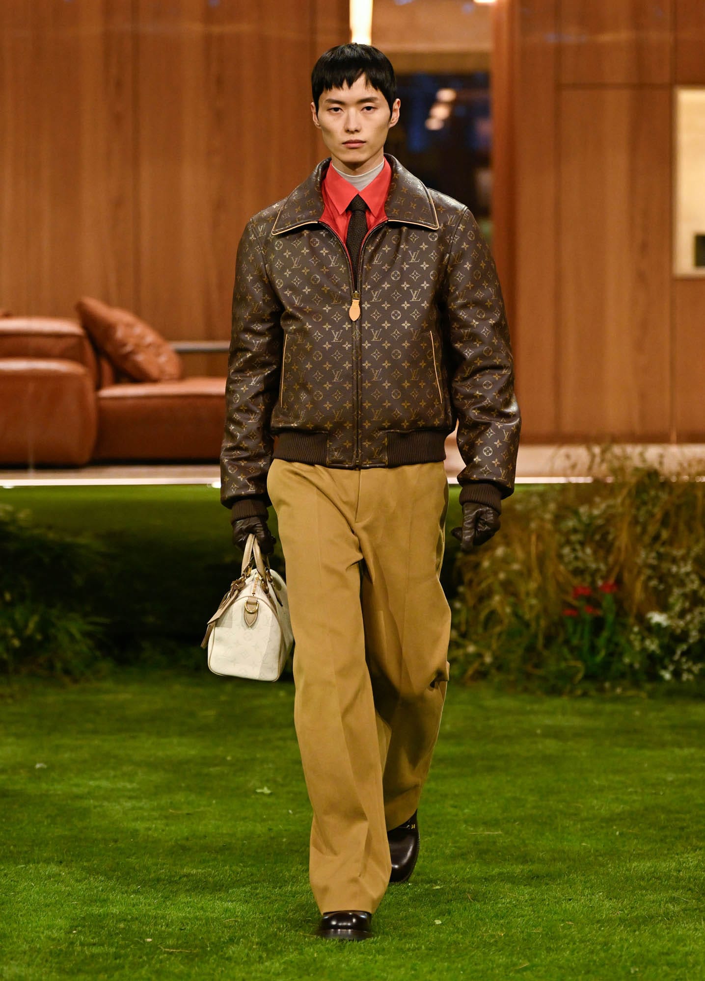 As for the clothes, it was strong on neutrals, business casual, most of it quite wearable, if you can afford it. And the monogram was popping, sent down the runway in a leather jacket that looked like what would happen if you took the seams out of a Speedy…