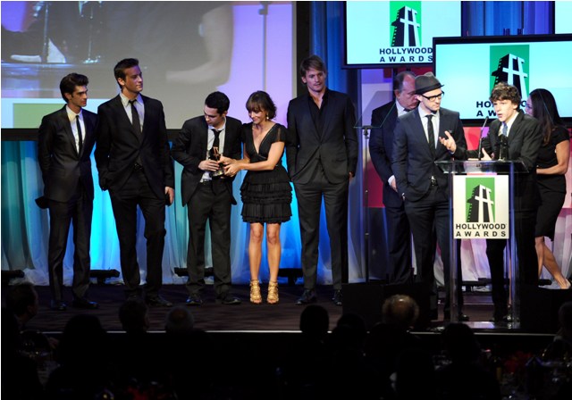 Last night the cast of The Social Network was named Best Ensemble at the Hollywood Awards. Look at them onstage. Why is Andrew Garfield way down to the side while Pippy is up front with Jesse Eisenberg eating up all the glory? Seems like Jesse wants to tell JT to Sit DOWN too.