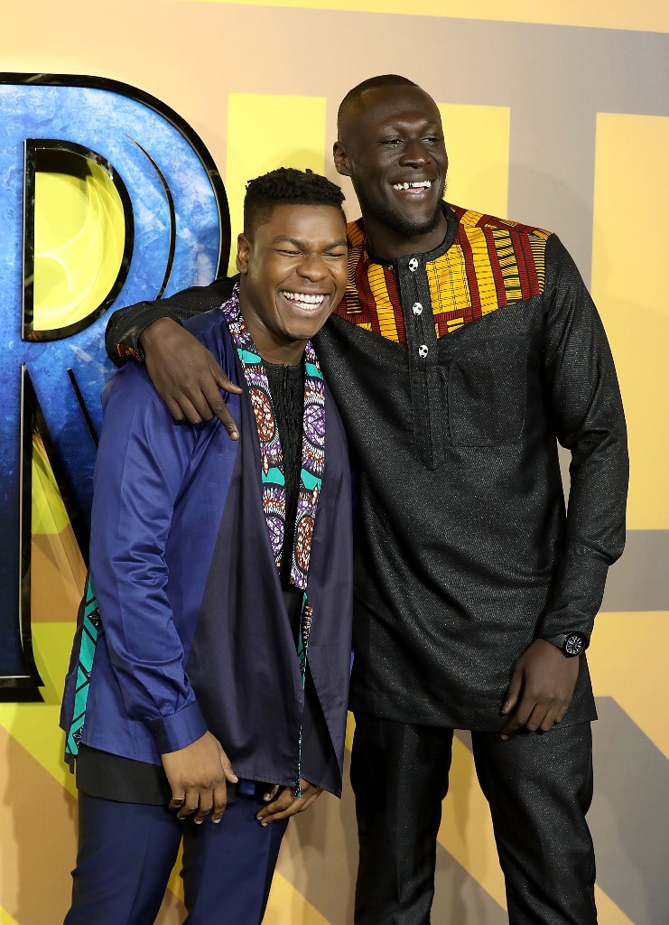 Compare those photos with this one of John Boyega and Stormzy at the Black Panther European premiere.