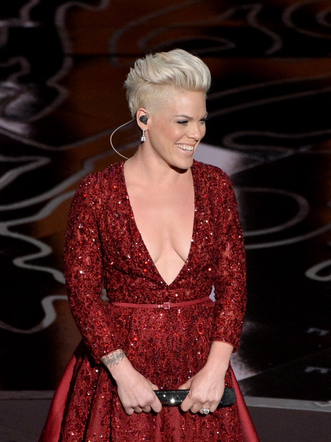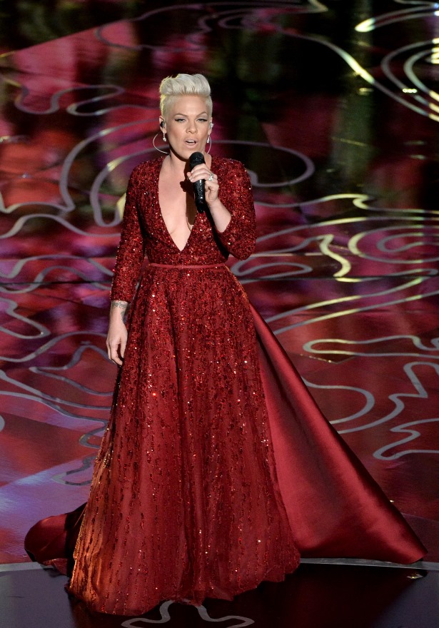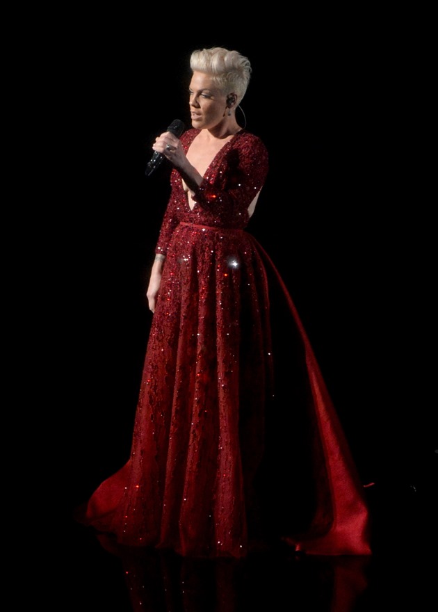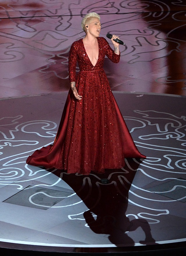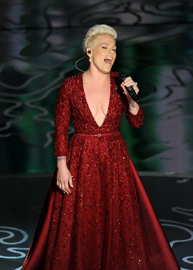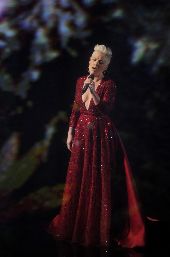 Why have I been looking at Pink on trapezes and silks for the last umpteen awards shows? That voice! She doesn’t need stunts and props. That was one of the most purely enjoyable vocal performances I can remember, and it felt a lot like Pink singing in her shower, and she looked fantastic in that red dress. She is at the top of her game. She doesn’t need streaks in her hair or body stockings decorated with athletic tape and yet she’s not looking for our approval, and she doesn’t have to worry that singing Somewhere Over The Rainbow will make her seem like she’s soft or something.