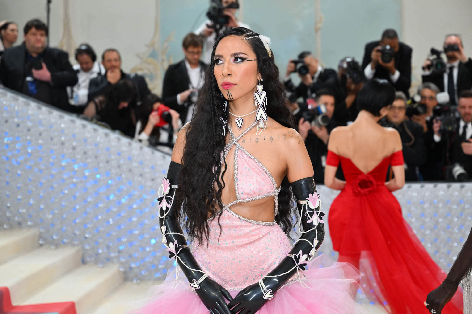 Other pink ladies include Jennifer Lopez Affleck in Ralph Lauren—it’s pretty but I feel like we’ve seen her in this dress a hundred times—Donatella Versace in a dress of her own design, and Quannah Chasinghorse in Prabal Gurung and jewelry from Ghanian and Lakota designers Demetria Buck and Rubia Buck of Sota Scowi Designs. Quannah is always repping Native pride.